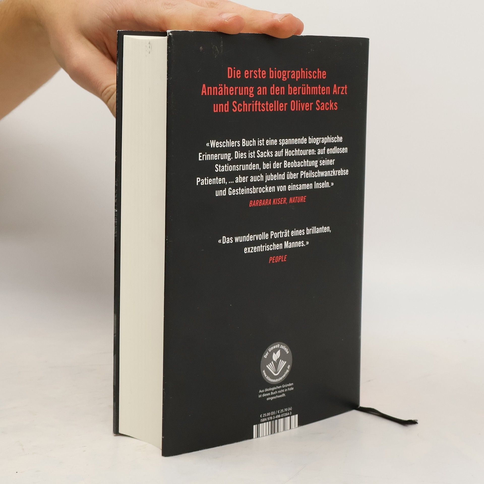 Er war ein großartiger Arzt und ein begnadeter Erzähler: Mit seinen Fallgeschichten hat Oliver Sacks Millionen Lesern ein neues, anderes Bild von Krankheit vermittelt. Voller Empathie und mit großer Fachkenntnis hat Sacks immer wieder Menschen beschrieben, deren Leben durch eine schwere Krankheit oder Behinderung geprägt wurde – und die unser Interesse und Mitgefühl verdienen. Schon 1981, als Sacks noch weitgehend unbekannt war, beschloss der Journalist Lawrence Weschler, die Biographie von Oliver Sacks zu schreiben. Er konnte ihn bei seiner täglichen Arbeit als Arzt erleben, begleitete ihn auf Reisen und führte zahlreiche intensive Gespräche mit ihm. Auf dieser Grundlage entstand eine sehr persönliche Nahaufnahme. Weschler erzählt ausführlich von der Entstehung der ersten Sacks-Bücher, die zu Bestsellern wurden, und verfolgt den Weg des Autors Oliver Sacks bis zu dessen Tod im Jahre 2015. Das einzigartige Porträt eines empathischen Menschenfreundes und Seelenforschers, der unser Bild von Krankheit und Gesundheit nachhaltig verändert hat.