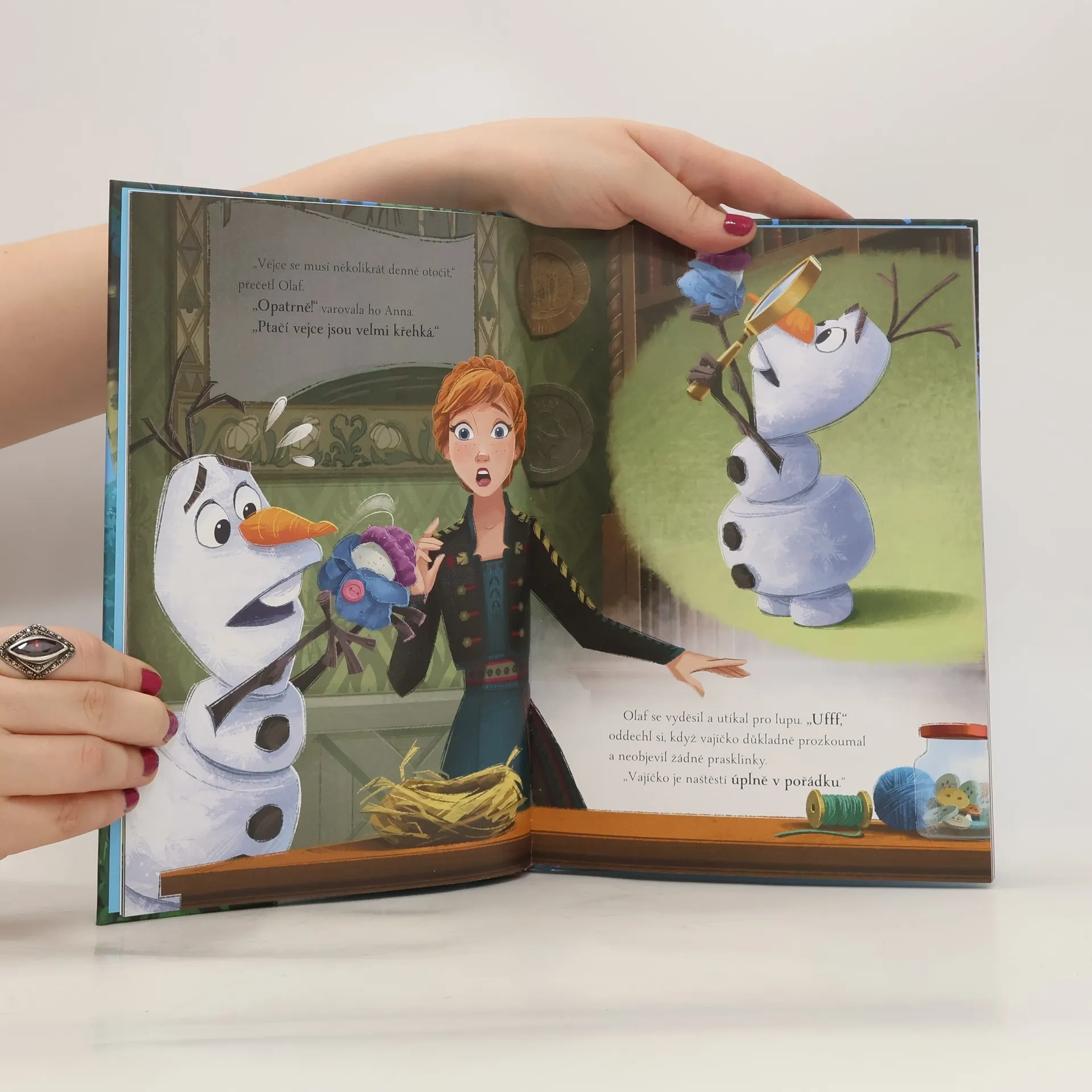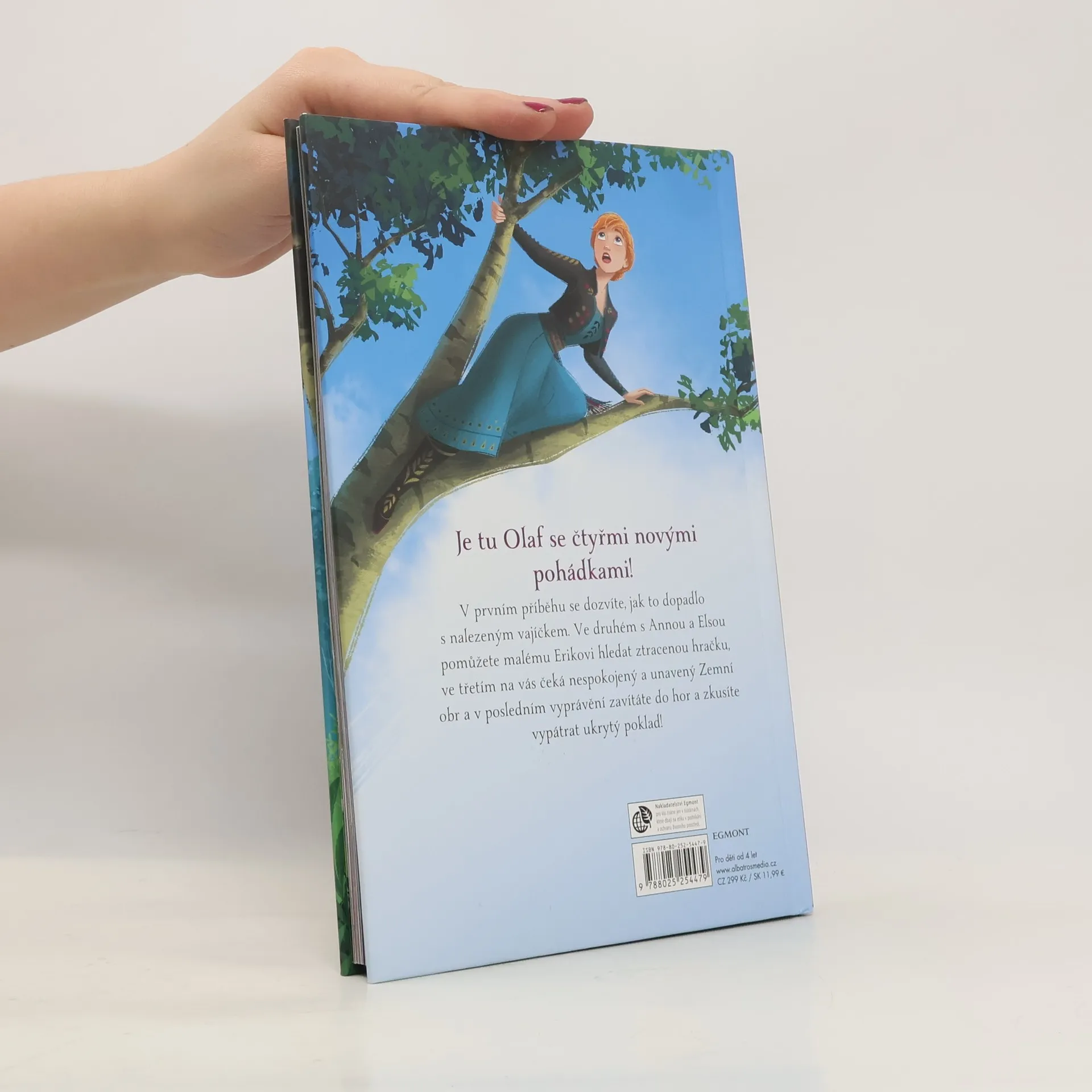 tu Olaf se čtyřmi novými pohádkami! V prvním příběhu se dozvíte, jak to dopadlo s nalezeným vajíčkem. Ve druhém s Annou a Elsou pomůžete malému Erikovi hledat ztracenou hračku, ve třetím na vás čeká nespokojený a unavený zemní obr a v posledním vyprávění zavítáte do hor a zkusíte vypátrat ukrytý poklad krále Agnarra!