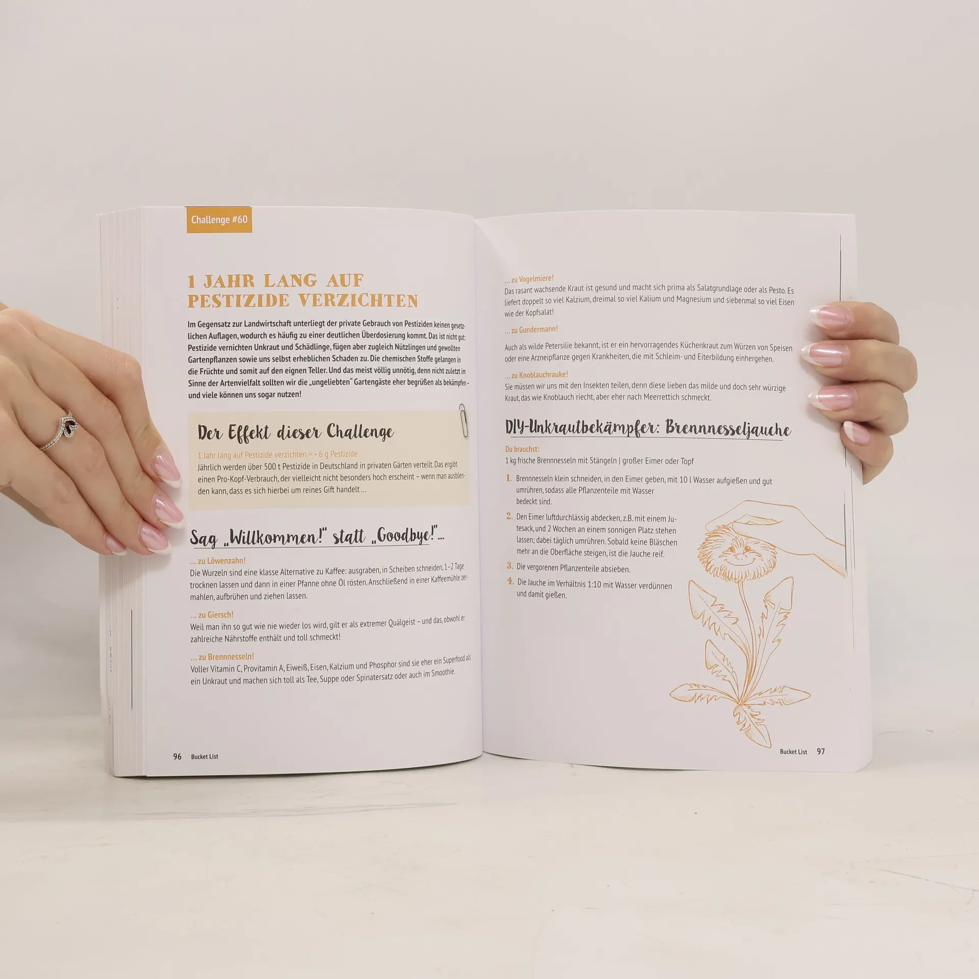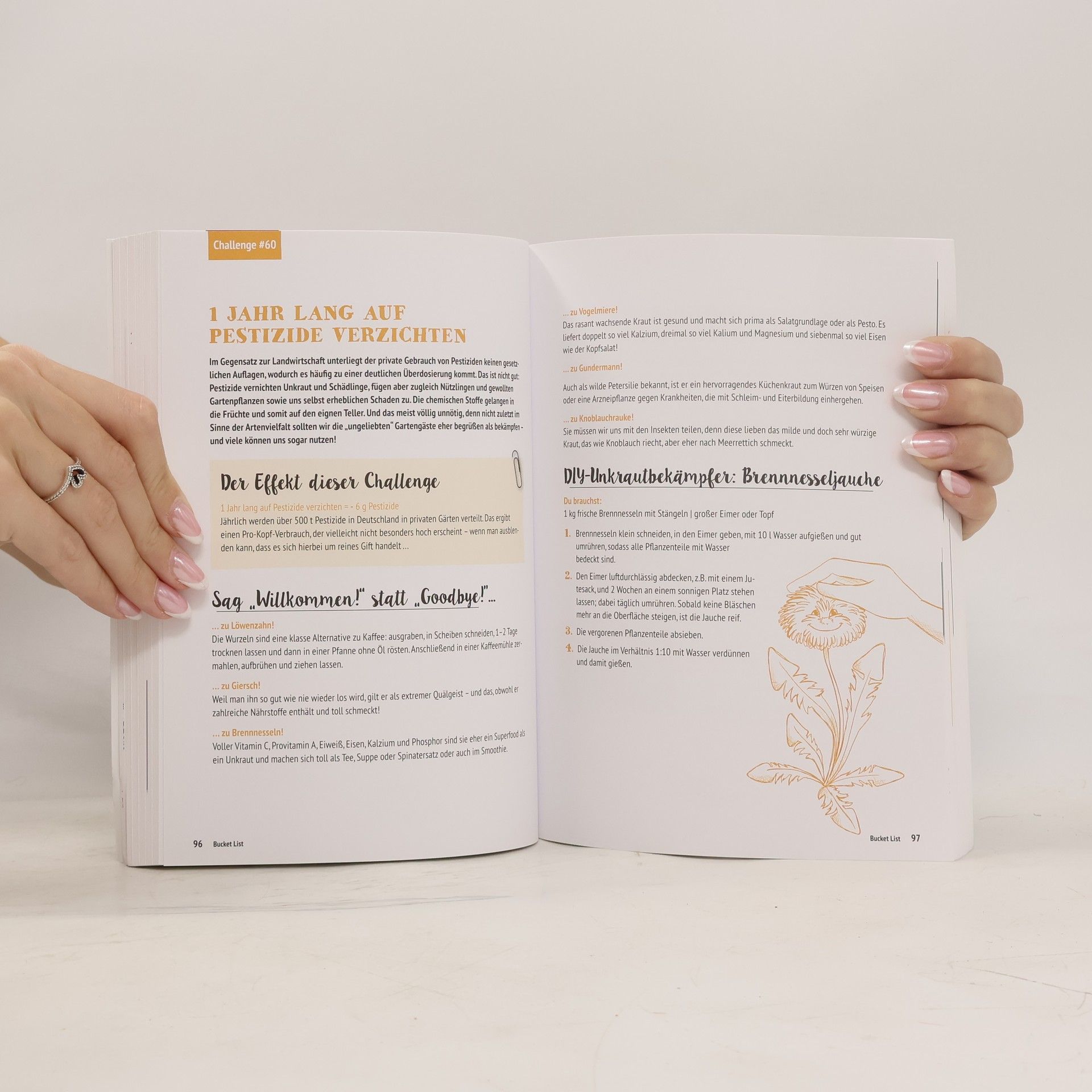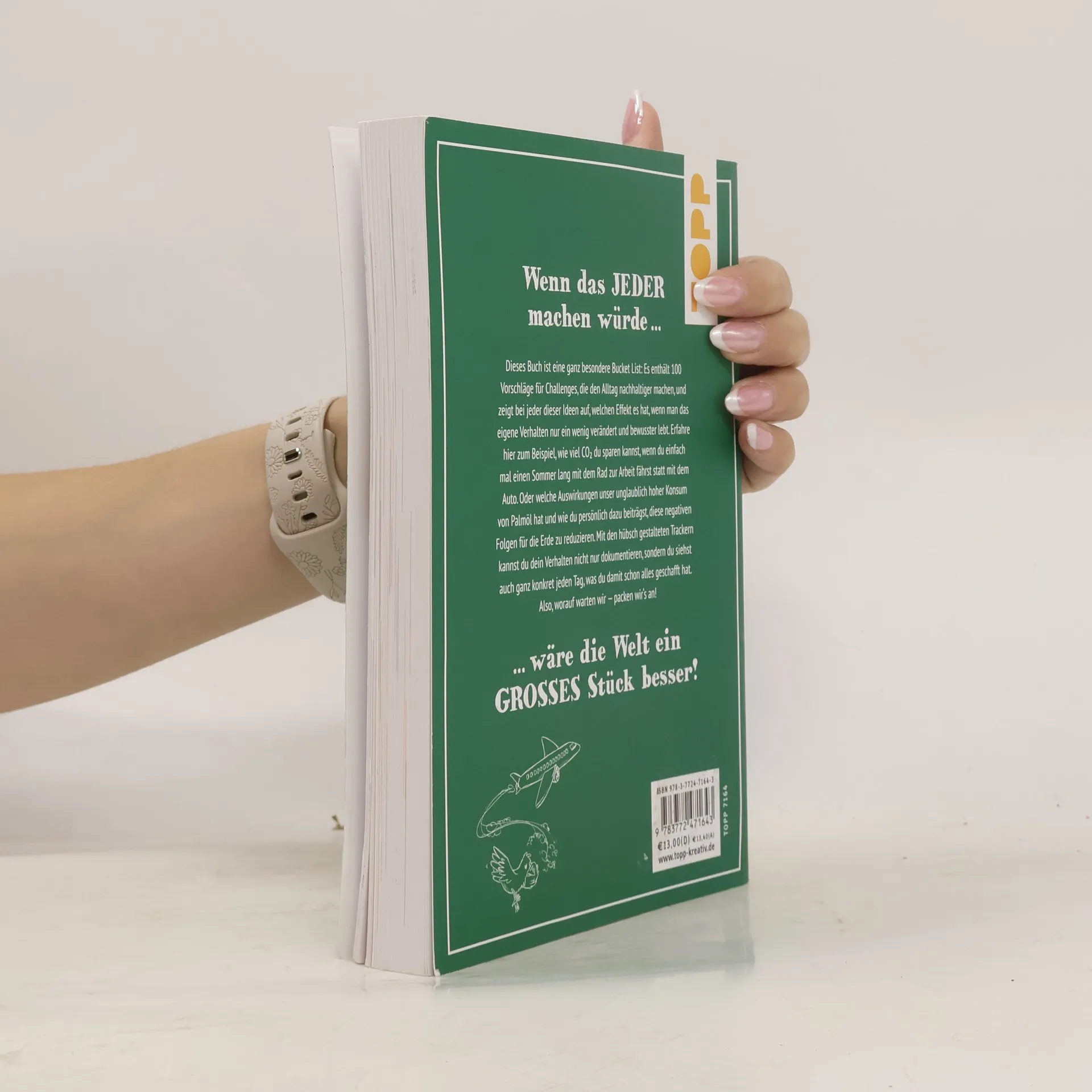 Nachhaltigkeit kann so einfach sein – man muss es nur anpacken! Diese Bucket List mit 100 Vorschlagen für Challenges, wie man den eigenen Alltag nachhaltiger machen kann, motiviert dazu ganz besonders: Es wird bei jedem Thema aufgezeigt, welchen Effekt das eigene Verhalten auf die Umwelt hat, also wie viel CO2 man sparen kann, indem man beispielsweise einfach mal einen Sommer lang mit dem Rad zur Arbeit fährt statt mit dem Auto oder indem man ein Jahr lang auf das umstrittene und leider beinahe allgegenwärtige Palmöl verzichtet. Die hübsch gestalteten Tracker im Buch ermöglichen es nicht nur, das eigene Verhalten zu dokumentieren, sondern sie zeigen auch ganz konkret, was man schon alles geschafft hat. Wenn das JEDER machen würde, wäre die Welt ein GROSSES Stück besser - packen wir's an, Tag für Tag!