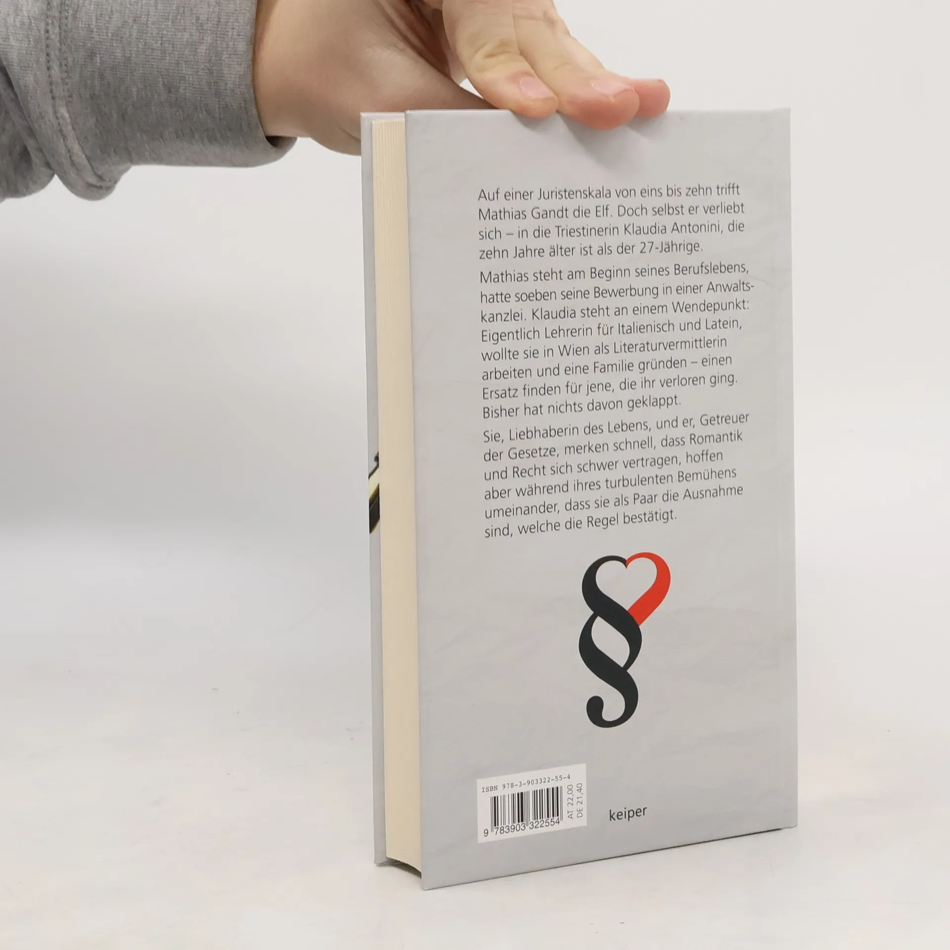 Ein mutiges und äußerst gelungenes literarisches Abenteuer: Die juristisch versierte, pointierte und intellektuelle Durchdringung der Welt – versus … die Liebe.Beißender Juristenjargon und die Entdeckung der Liebe.Flott, dialogreich und humorvoll kollidiert ein Anwaltsroman mit einem Beziehungsroman.Paragraphen und Literatur fügen sich zu einem inspirierenden Buch, das zu neuem und anderem Denken anregt. Auf einer Juristenskala von eins bis zehn trifft Mathias Gandt die Elf. Doch selbst er verliebt sich – in die Triestinerin Klaudia Antonini, die zehn Jahre älter ist als der 27-Jährige.Mathias steht am Beginn seines Berufslebens und hatte gerade ein Bewerbungsgespräch in einer Wiener Kanzlei. Klaudia steht an einem Wendepunkt: Eigentlich Lehrerin für Italienisch und Latein, wollte sie in Wien als Literaturvermittlerin arbeiten und eine Familie gründen. Bisher hat nichts davon geklappt. Sie, Liebhaberin des Lebens, und er, Getreuer der Gesetze, merken schnell, dass Romantik und Recht sich schwer vertragen, hoffen aber während ihres turbulenten Bemühens umeinander, dass sie als Paar die Ausnahme sind, welche die Regel bestätigt.
