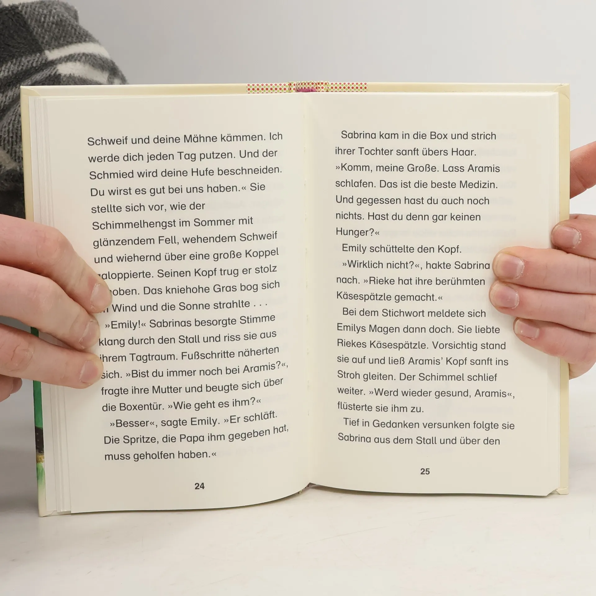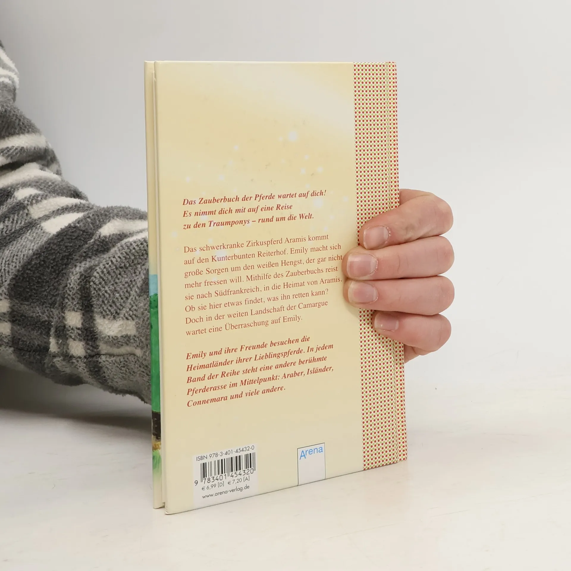 Das schwerkranke Zirkuspferd Aramis kommt auf den Kunterbunten Reiterhof. Emily macht sich große Sorgen um den weißen Hengst, der gar nicht mehr fressen will. Mithilfe des Zauberbuchs reist sie nach Südfrankreich, in die Heimat von Aramis. Ob sie hier etwas findet, was ihn retten kann? Doch in der weiten Landschaft der Camargue wartet eine Überraschung auf Emily.