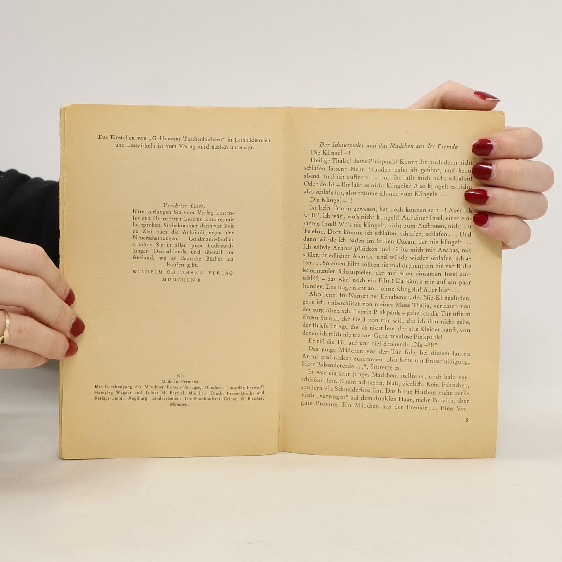 Der Schauspieler und das Mädchen. Der gefeierte Schauspieler Gerd Babendererde singt in seiner berühmtesten Rolle allabendlich das Lied „Die Stunde, eh du schlafen gehst“, das von ganz Berlin gesummt wird. Da taucht eine unbekannte junge Frau bei ihm Ilse van Reep möchte auch singen und bittet ihn um Rat. Er hört sie an, fertigt sie allerdings böse ab. Doch dann geht ihm die Frau mit der überraschend tiefen Stimme und dem Namen, der ihm irgendwie bekannt vorkommt, nicht mehr aus dem Kopf. Mit liebenswürdiger Heiterkeit erzählt Hans Fallada die Geschichte einer Liebe, die im Berlin der Schauspieler und Regisseure beginnt und dann nach Lübeck führt, in die altehrwürdige Siebentürmestadt, die der Autor so besonders liebte.