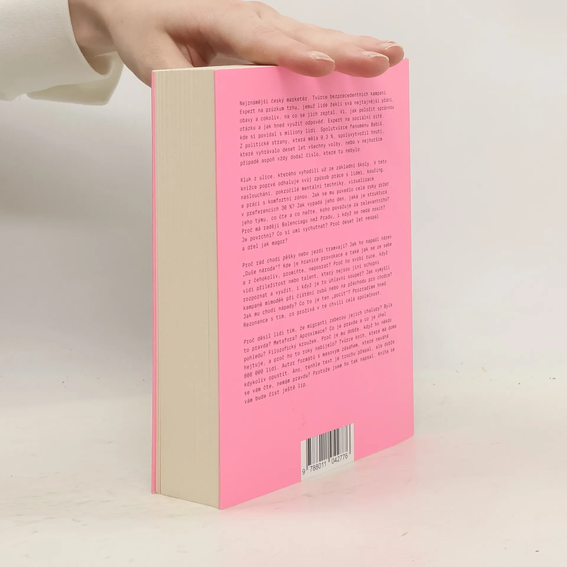 Nejznámější český marketér a tvůrce bezprecedentních kampaní odhaluje svůj jedinečný přístup k práci s lidmi. Jako expert na průzkum trhu získal důvěru a tajemství milionů, ví, jak klást správné otázky a využít odpovědi. Je spolutvůrcem úspěšného hnutí, které vyhrálo volby po dobu deseti let. Přestože má za sebou těžké dětství, jeho metody koučingu, naslouchání a pokročilé mentální techniky mu umožnily dosáhnout úspěchu. Jak se mu podařilo udržet preference 30 %? Jak vypadá jeho den a struktura týmu? Co čte a koho považuje za inspiraci? Proč preferuje Balenciagu před Pradou? Jak se mu rodí nápady, a co znamená „pocit“? Rezonance s tím, co prožívá celá společnost, je klíčová. Jaké provokace zvolil a proč mu nevadí kritika? Je autorem knih, které oslovují 800 000 lidí, a formátů s masovým zásahem. Tento text je přepal, ale čtivý, a kniha slibuje ještě lepší zážitek.