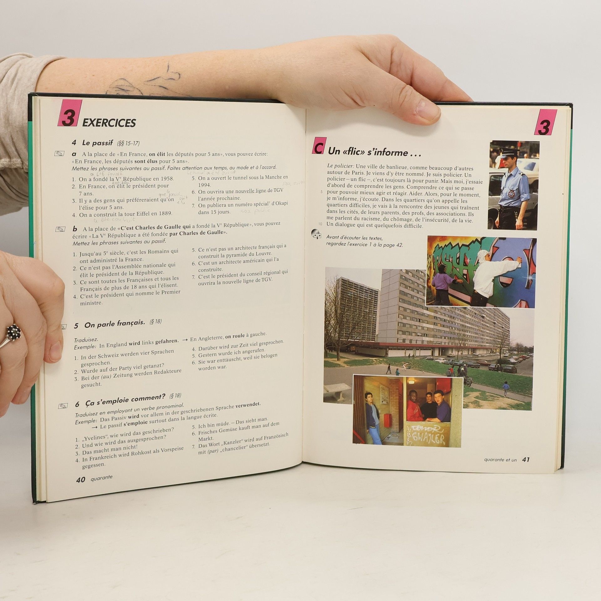 Découvertes 4 ist ein schlanker Abschlussband, der neben seinem Angebot an authentischen Texten und ansprechendenThemen auch Raum für fächerübergreifende Aktivitäten lässt. Ein besonderes Profil: Lektionen und Unités mobiles Band 4 besteht aus drei Lektionen und drei flexibel einsetzbaren Unités mobiles, die wiederum in jeweils drei Teile untergliedert sind. Anders als in Echanges setzt in den Unités mobiles jeder der drei Teile nur den mit Lektion 3 erreichten Stand voraus. Vorbereitung auf die Oberstufe Unter der Rubrik Pour parler d'un texte werden wichtige Redemittel zur Textbesprechung eingeführt. Die Aufgaben zur Texterarbeitung führen auf wesentliche Fragestellungen hin und helfen das Textverständnis zu entwickeln. Insgesamt, besonders aber bei Redemitteln und Inhalten dieser Rubrik, wurde besonderer Wert auf die Abstimmung mit Nouveaux Horizons, unserem Lehrwerk für die Sekundarstufe II, gelegt. Textarbeit Weil es in der 10. Klasse Schritt für Schritt auf die Oberstufe zugeht, spielt die Textarbeit in Band 4 eine besonderswichtige Rolle. Um den Zugang zu den Lesetexten nicht zu verstellen, wird der neue Wortschatz mit Fußnoten und Übungen unkompliziert vorentlastet."