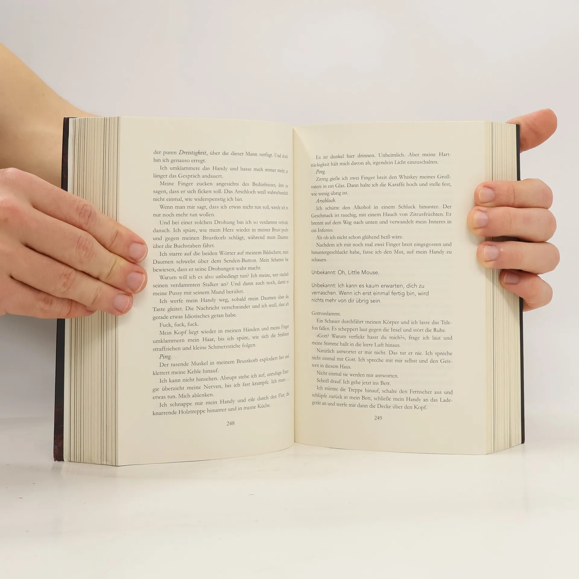 Ich war lange auf der Suche nach dieser Ausgabe natürlich mit dem wunderschönen Farbschnitt, denn ich hatte den zweiten Teil schon mit Farbschnitt. Und sie sehen im Regal mehr als gut aus. Ich habe mich sehr gefreut als es ankam. Ich war auch auf den Inhalt sehr gespannt und konnte es kaum erwarten damit anfangen zu können. Der Inhalt hat mich etwas überrascht aber auch sehr gefesselt. Ich konnte das Buch sehr schlecht aus der Hand legen. Ich freue mich darauf auch weitere Bücher hierüber beziehen zu können. Der Zustand des Buches war völlig in Ordnung. Ich hatte überhaupt nichts zu beanstanden. Ich würde es auf jeden Fall weiter empfehlen vielleicht nicht jedem denn es ist stellenweise nicht ohne aber okay.