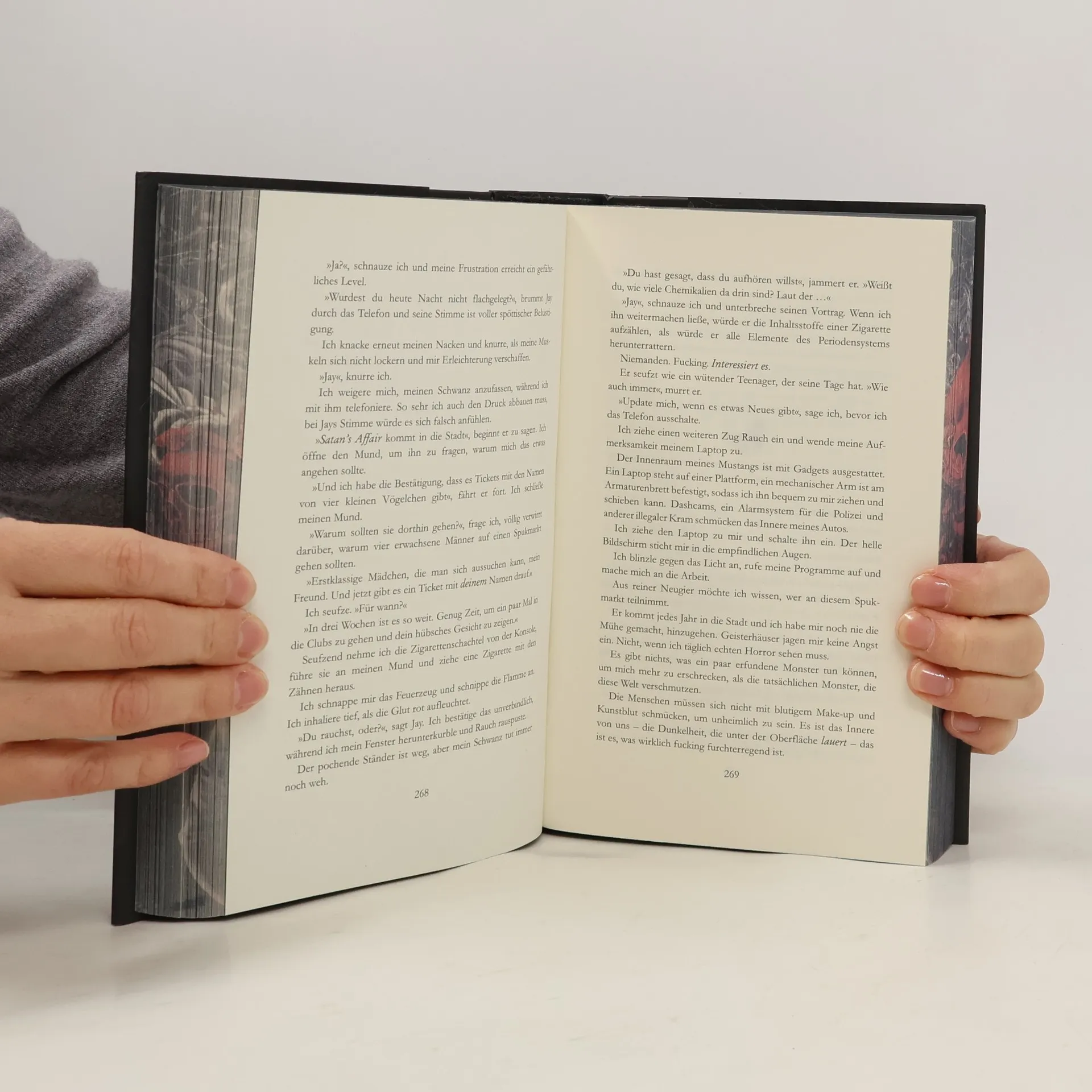Ich war lange auf der Suche nach dieser Ausgabe natürlich mit dem wunderschönen Farbschnitt, denn ich hatte den zweiten Teil schon mit Farbschnitt. Und sie sehen im Regal mehr als gut aus. Ich habe mich sehr gefreut als es ankam. Ich war auch auf den Inhalt sehr gespannt und konnte es kaum erwarten damit anfangen zu können. Der Inhalt hat mich etwas überrascht aber auch sehr gefesselt. Ich konnte das Buch sehr schlecht aus der Hand legen. Ich freue mich darauf auch weitere Bücher hierüber beziehen zu können. Der Zustand des Buches war völlig in Ordnung. Ich hatte überhaupt nichts zu beanstanden. Ich würde es auf jeden Fall weiter empfehlen vielleicht nicht jedem denn es ist stellenweise nicht ohne aber okay.