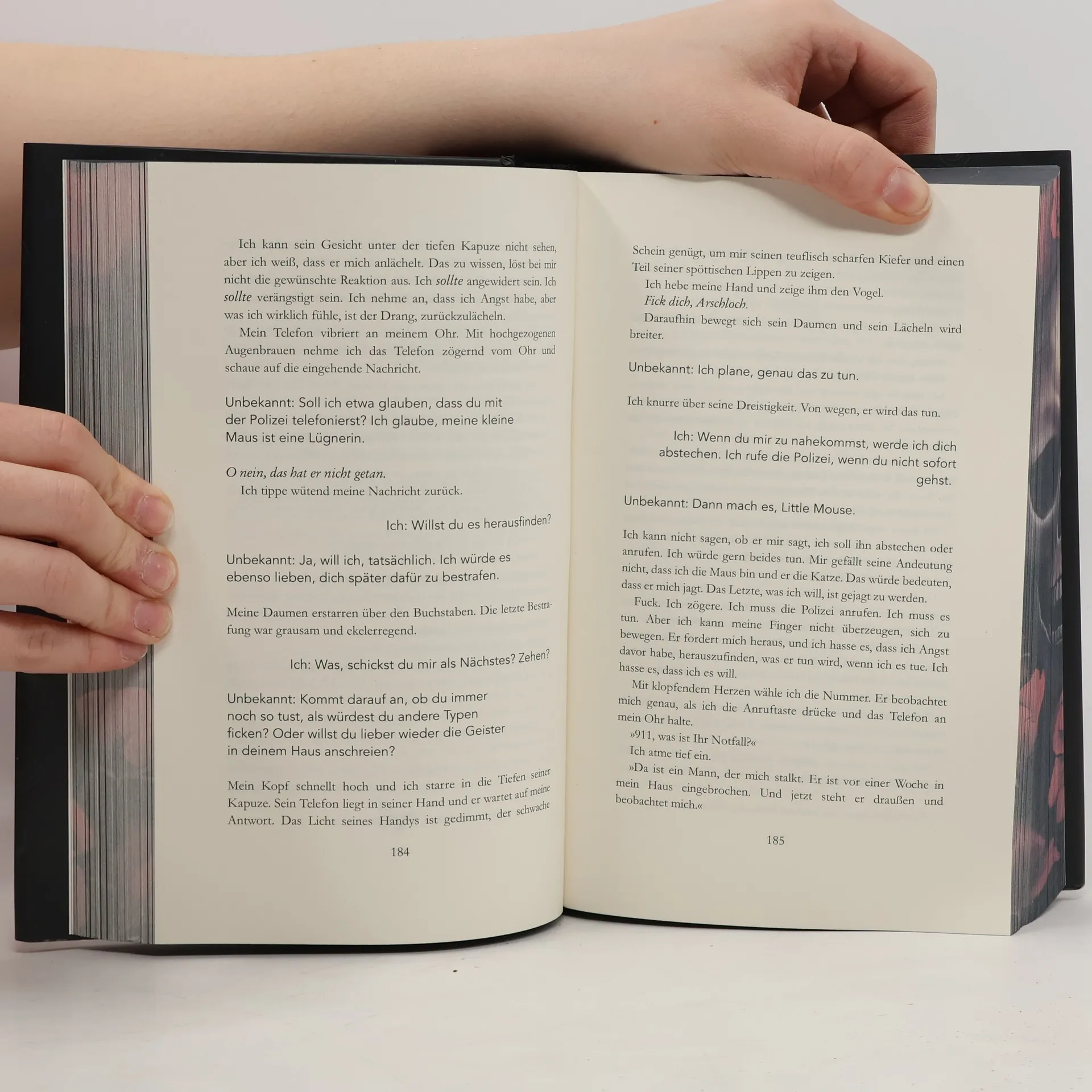 Ich war lange auf der Suche nach dieser Ausgabe natürlich mit dem wunderschönen Farbschnitt, denn ich hatte den zweiten Teil schon mit Farbschnitt. Und sie sehen im Regal mehr als gut aus. Ich habe mich sehr gefreut als es ankam. Ich war auch auf den Inhalt sehr gespannt und konnte es kaum erwarten damit anfangen zu können. Der Inhalt hat mich etwas überrascht aber auch sehr gefesselt. Ich konnte das Buch sehr schlecht aus der Hand legen. Ich freue mich darauf auch weitere Bücher hierüber beziehen zu können. Der Zustand des Buches war völlig in Ordnung. Ich hatte überhaupt nichts zu beanstanden. Ich würde es auf jeden Fall weiter empfehlen vielleicht nicht jedem denn es ist stellenweise nicht ohne aber okay.