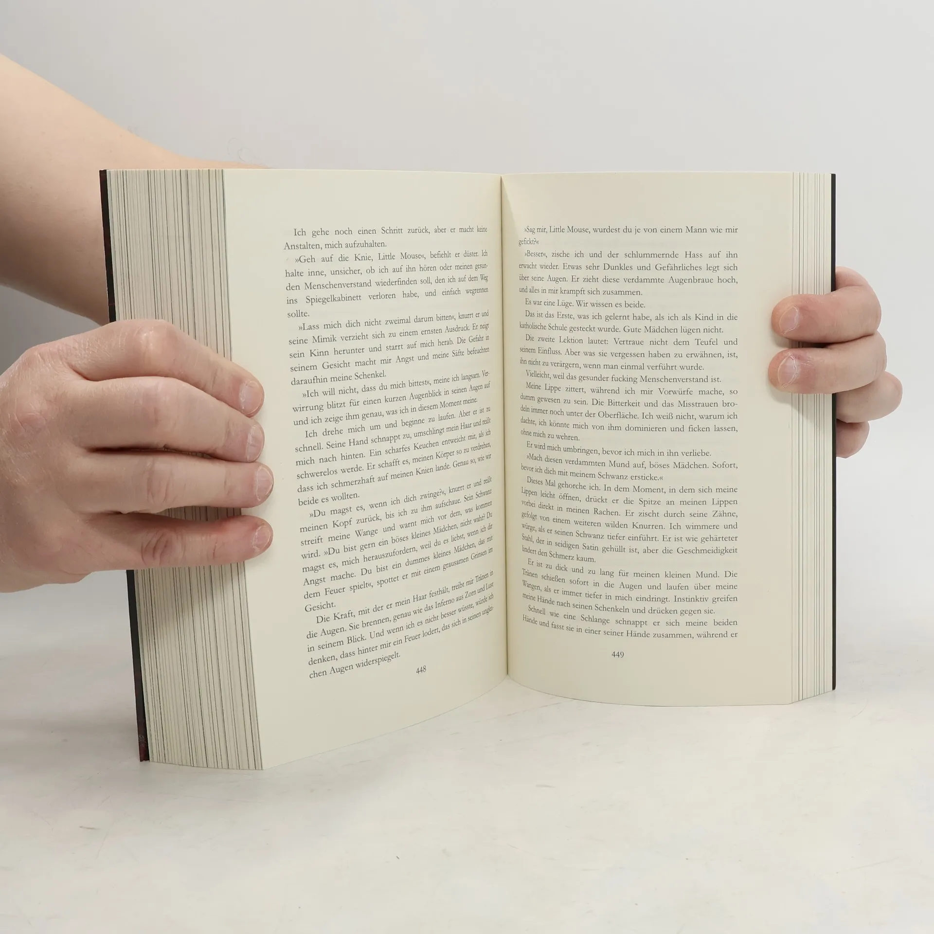 Ich war lange auf der Suche nach dieser Ausgabe natürlich mit dem wunderschönen Farbschnitt, denn ich hatte den zweiten Teil schon mit Farbschnitt. Und sie sehen im Regal mehr als gut aus. Ich habe mich sehr gefreut als es ankam. Ich war auch auf den Inhalt sehr gespannt und konnte es kaum erwarten damit anfangen zu können. Der Inhalt hat mich etwas überrascht aber auch sehr gefesselt. Ich konnte das Buch sehr schlecht aus der Hand legen. Ich freue mich darauf auch weitere Bücher hierüber beziehen zu können. Der Zustand des Buches war völlig in Ordnung. Ich hatte überhaupt nichts zu beanstanden. Ich würde es auf jeden Fall weiter empfehlen vielleicht nicht jedem denn es ist stellenweise nicht ohne aber okay.