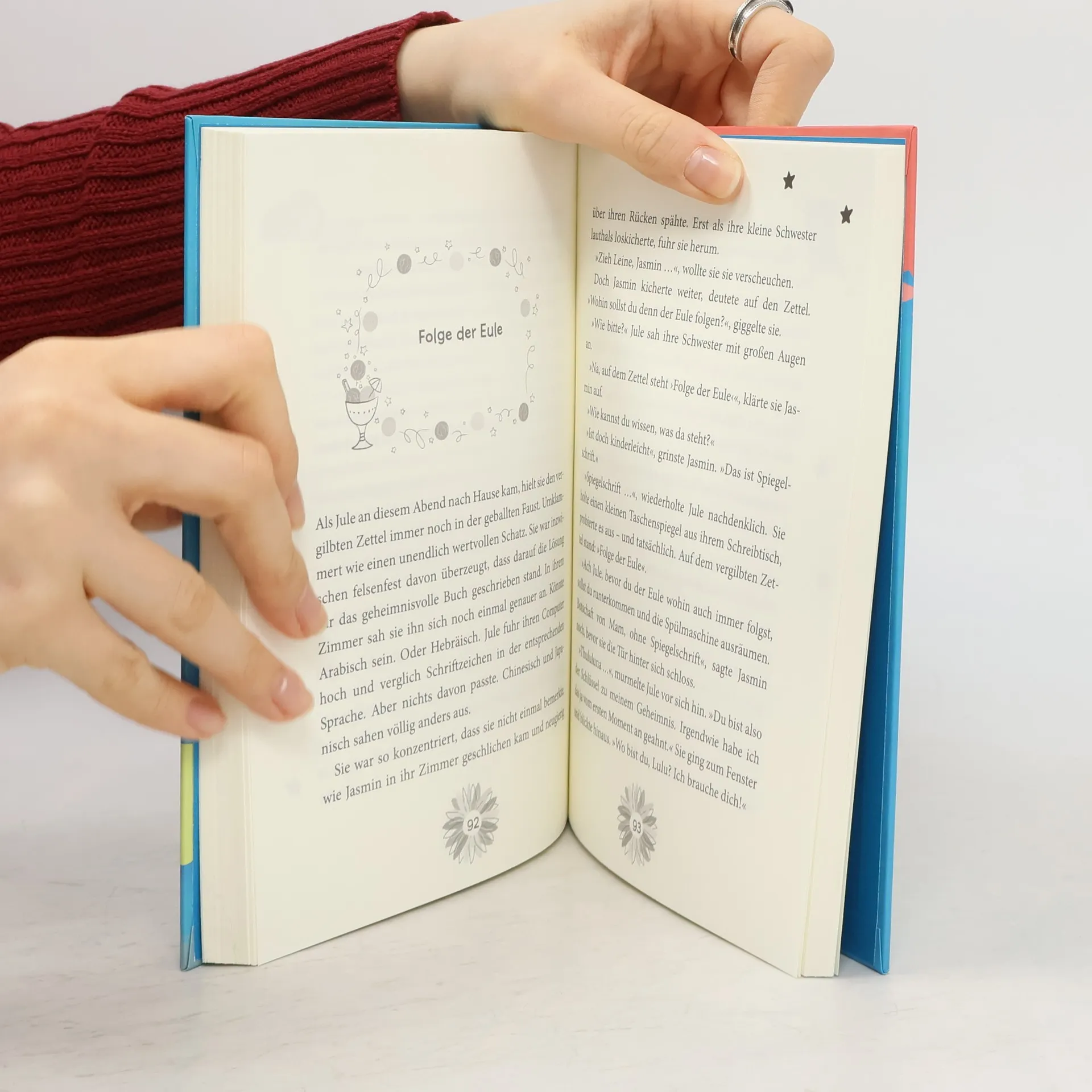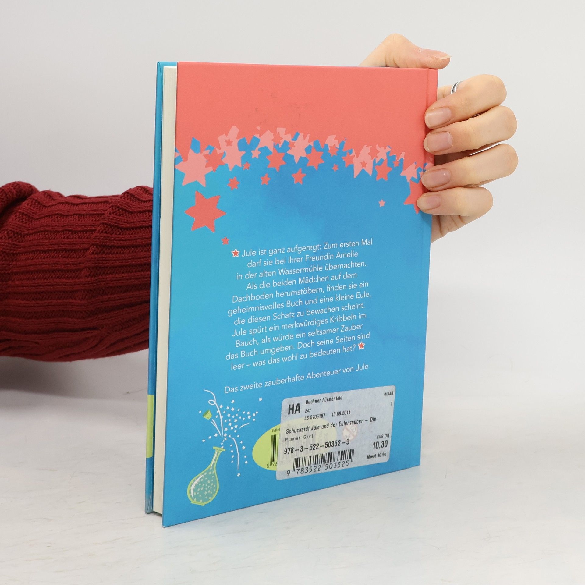 Jule ist ganz aufgeregt: Zum ersten Mal darf sie bei ihrer Freundin Amelie in der alten Wassermühle übernachten. Als die beiden Mädchen auf dem Dachboden herumstöbern, finden sie unter einer losen Holzplanke ein geheimnisvolles Buch und eine kleine Eule, die diesen Schatz zu bewachen scheint. Jule spürt ein merkwürdiges Kribbeln im Bauch, als würde ein seltsamer Zauber das Buch umgeben. Doch seine Seiten sind leer - was das wohl zu bedeuten hat? Jule macht sich auf eine spannende Spurensuche.