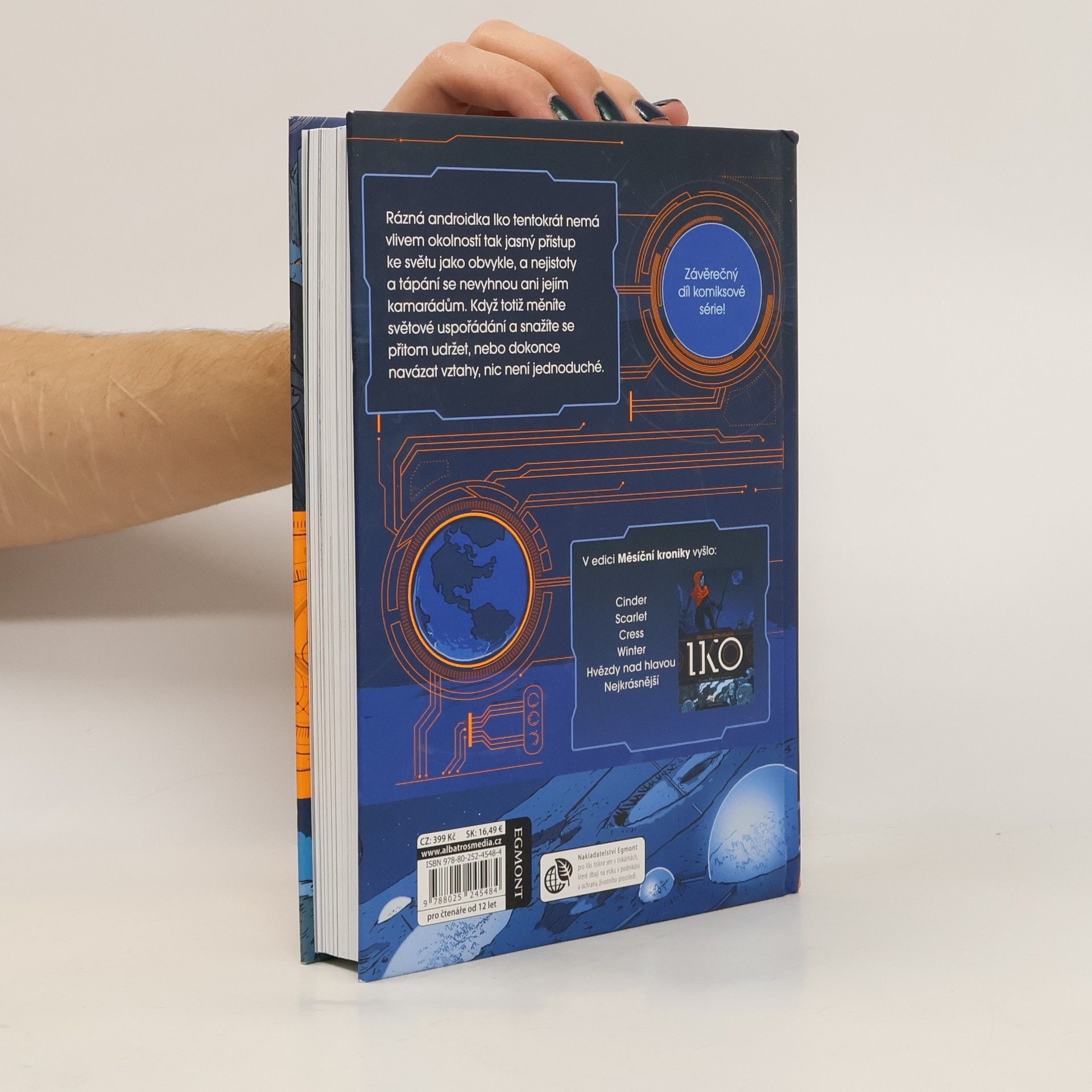 Druhý díl komiksové série, která se tentokrát soustředí na ráznou androidku Iko, která má jasný přístup ke světu, přátelům i nepřátelům, nás provede také nejistotami a tápáním jejích kamarádů. Když totiž měníte světové uspořádání a snažíte se během toho udržet, nebo dokonce navázat vztahy, nic není jednoduché. Nezlomí Iko všeobecné názory na její "porouchaný" systém? Přesvědčí Scarlet Vlka, že je pro ni nejdůležitější na světě v jakékoli podobě? A zvládne přímočará Cinder fungovat v politice a udržet si přitom osobní život a přátele? A jak to dopadne s vlčími vojáky? To vše se dozvíte v napínavém doplnění Měsíčních kronik!