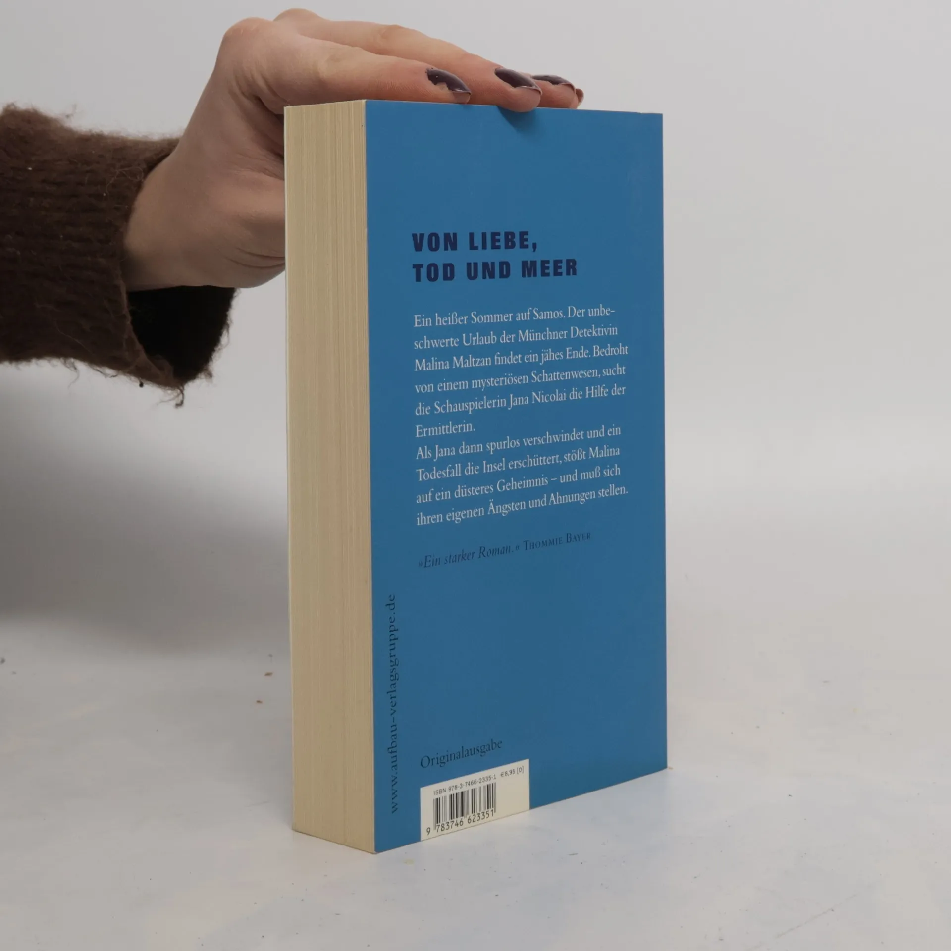 Von Liebe, Tod und Meer Ein heißer Sommer auf Samos. Der unbeschwerte Urlaub der Münchner Detektivin Malina Maltzan findet ein jähes Ende. Bedroht von einem mysteriösen Schattenwesen, sucht die Schauspielerin Jana Nicolai die Hilfe der Ermittlerin. Als Jana dann spurlos verschwindet und ein Todesfall die Insel erschüttert, stößt Malina auf ein düsteres Geheimnis - und muß sich ihren eigenen Ängsten und Ahnungen stellen.