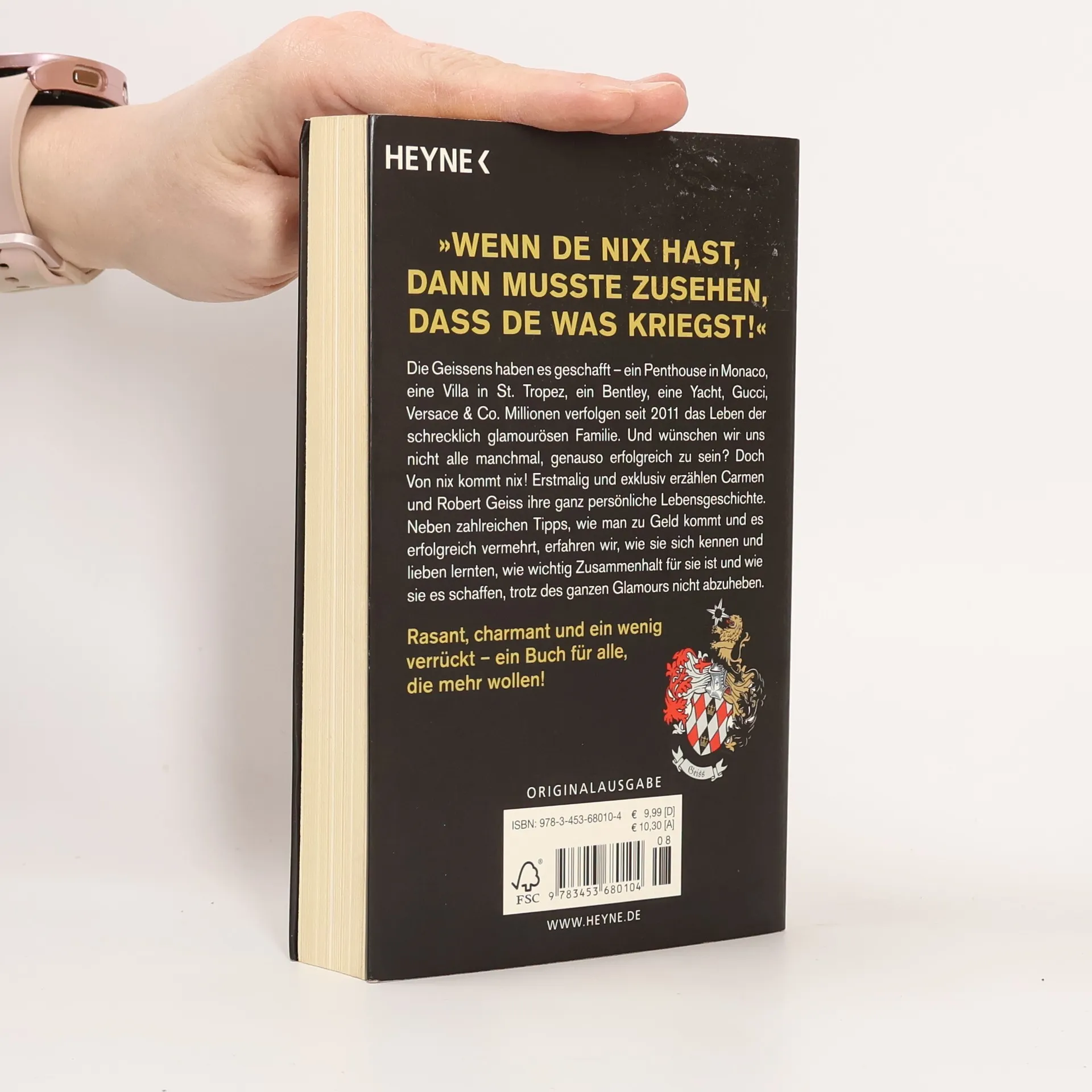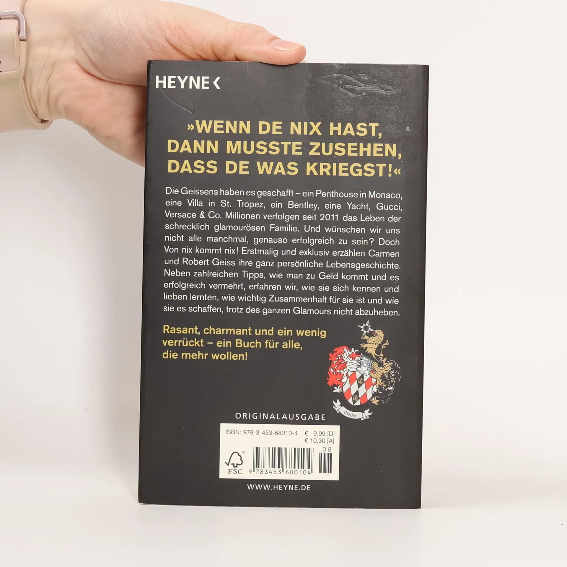 Sei nicht dumm, werd reich! Die Geissens haben es geschafft – ein Penthouse in Monaco, eine Villa in St. Tropez, ein Bentley, eine Yacht, Gucci, Versace & Co. Millionen verfolgen seit 2011 das Leben der schrecklich glamourösen Familie. Und wünschen wir uns nicht alle manchmal, genauso erfolgreich zu sein? Doch Von nix kommt nix! Erstmalig und exklusiv erzählen Carmen und Robert Geiss ihre ganz persönliche Lebensgeschichte. Neben zahlreichen Tipps, wie man zu Geld kommt und es erfolgreich vermehrt, erfahren wir, wie sie sich kennen und lieben lernten, wie wichtig Zusammenhalt für sie ist und wie sie es schaffen trotz des ganzen Glamours, nicht abzuheben. Ausstattung: 24 Seiten Farbbildteil
