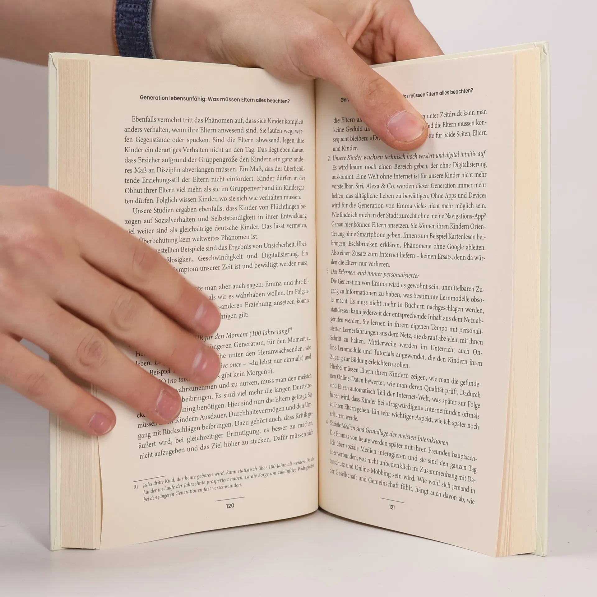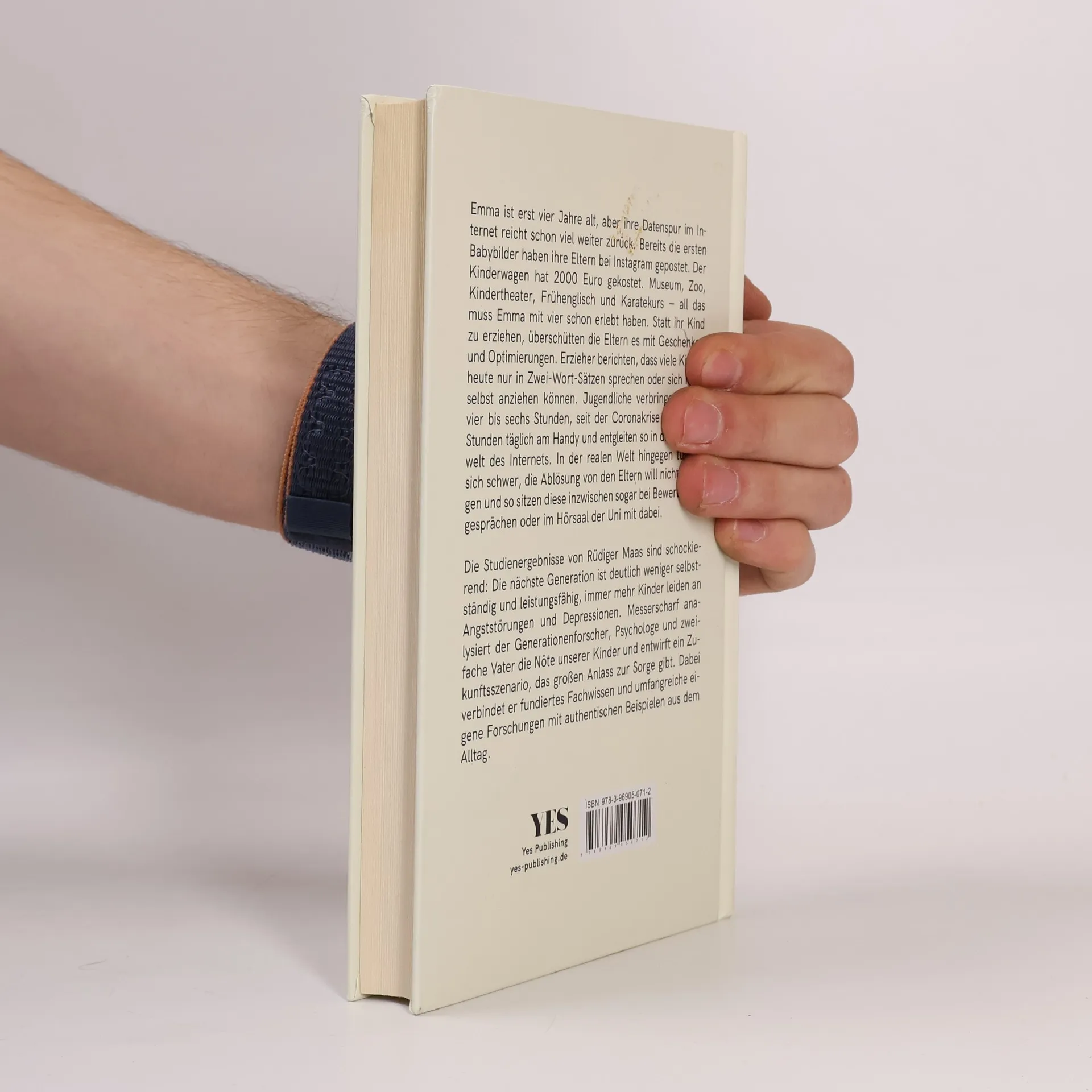 Emma ist erst vier Jahre alt, aber ihre Datenspur im Internet reicht schon viel weiter zurück. Bereits das erste Ultraschallbild haben ihre Eltern bei Instagram gepostet. Der Kinderwagen hat 2000 Euro gekostet. Museum, Zoo, Kindertheater, Frühenglisch und Karatekurs – all das muss Emma mit vier schon erlebt haben. Statt ihr Kind zu erziehen, überschütten die Eltern es mit Liebe, Geschenken und Optimierungen. Erzieher berichten, dass viele Kinder heute später trocken werden, nur in 2-Wort-Sätzen sprechen oder sich nicht selbst anziehen können. Jugendliche verbringen längst vier bis sechs Stunden täglich am Handy und entgleiten so in die Parallelwelt des Internets. In der realen Welt hingegen tun sie sich schwer, die Ablösung von den Eltern will nicht gelingen und so sitzen diese inzwischen sogar bei Bewerbungsgesprächen oder im Hörsaal der Uni mit dabei. Die Studienergebnisse von Rüdiger Maas sind schockierend: Die nächste Generation ist deutlich weniger selbstständig und leistungsfähig, immer mehr Kinder leiden an Angststörungen und Depressionen. Messerscharf analysiert der Generationenforscher, Psychologe und zweifache Vater die Nöte unserer Kinder und entwirft ein Zukunftsszenario, das großen Anlass zur Sorge gibt. Dabei verbindet er fundiertes Fachwissen und umfangreiche eigene Forschungen mit authentischen Beispielen aus dem Alltag.