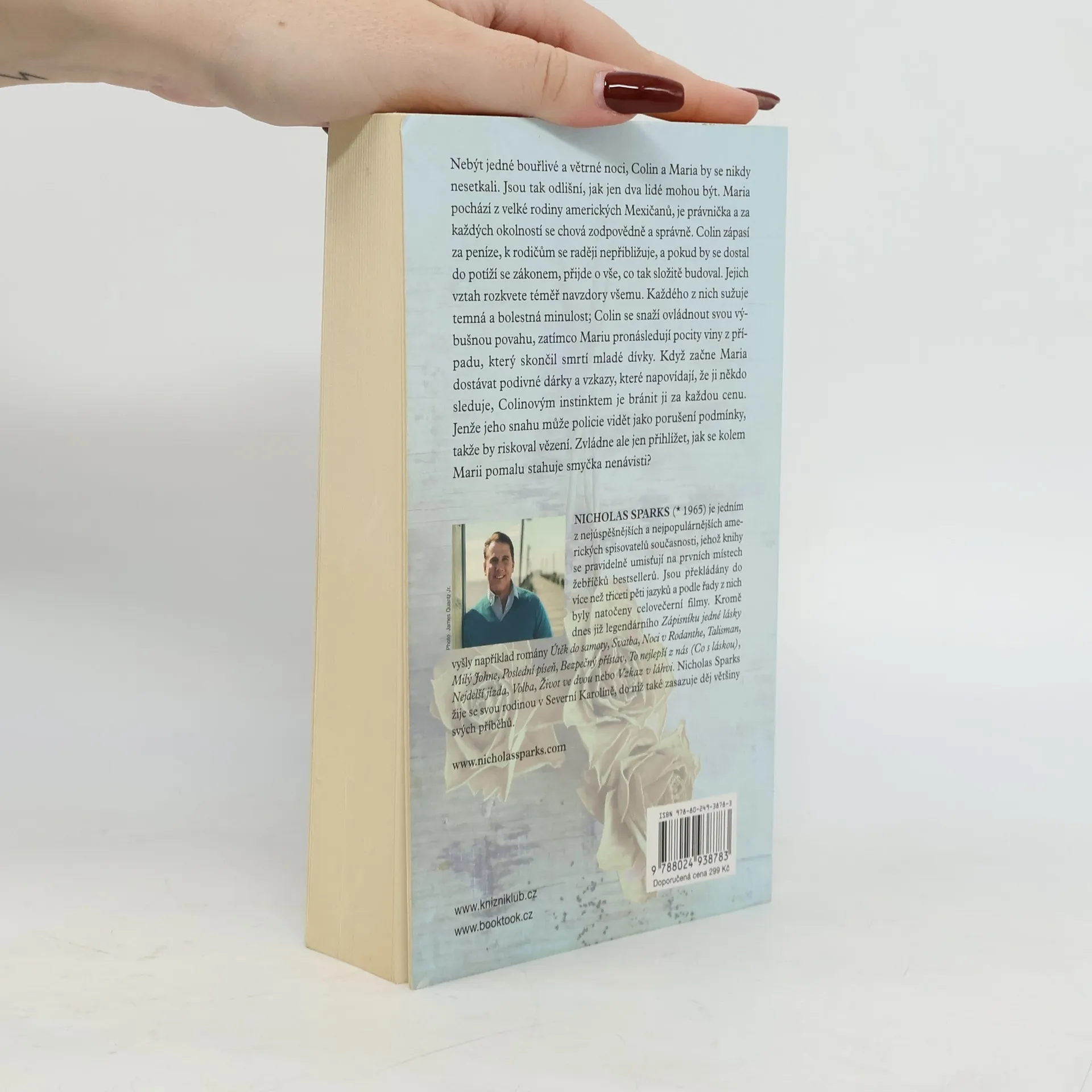 2. vydání. Colin Hancock má za sebou divokou minulost, a přestože se snaží žít spořádaně, stále se nad ním vznáší hrozba vězení. Maria Sanchezová, dcera mexických přistěhovalců, je jeho zdánlivý opak; úspěšná, tvrdě pracující, dokonalá. Ani jeden nehledá vážný vztah, ale náhodné setkání na deštivé silnici zkříží jejich cesty naprosto nečekaným způsobem. Silně zakořeněné předsudky nakonec nejsou tak silné jako pouto, které se mezi nimi vytvoří. Nový román Nicholase Sparkse připomíná, že ti, kdo nás dokážou vidět v nejjasnějším světle, se zprvu mohou skrývat ve stínu…