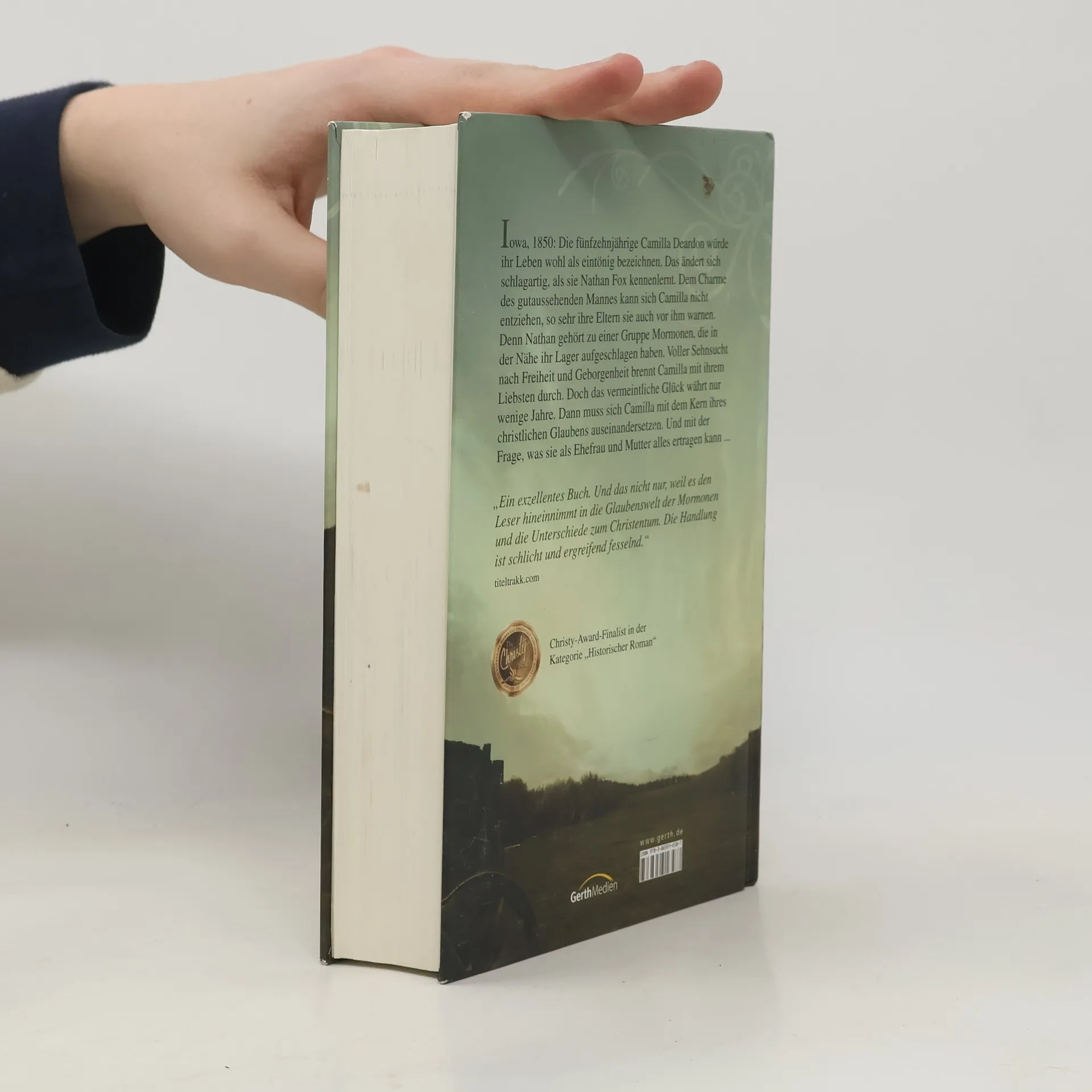 Iowa, 1850: Die fünfzehnjährigen Camilla Deardon würde ihr Leben wohl als „eintönig“ bezeichnen. Das ändert sich schlagartig, als sie Nathan Fox kennenlernt. Dem Charme des gutaussehenden Mannes kann sich Camilla nicht entziehen, so sehr ihre Eltern sie auch vor ihm warnen. Denn Nathan gehört zu einer Gruppe Mormonen, die in der Nähe ihr Lager aufgeschlagen haben. Voller Sehnsucht nach Freiheit und Geborgenheit brennt Camilla mit ihrem Liebsten durch. Doch das vermeintliche Glück währt nicht lange. Camilla muss sich mit dem Kern ihres christlichen Glaubens auseinandersetzen. Und mit der Frage, was sie als Ehefrau und Mutter alles ertragen kann. Die Fortsetzung dieses Romans erscheint im Juni 2012.