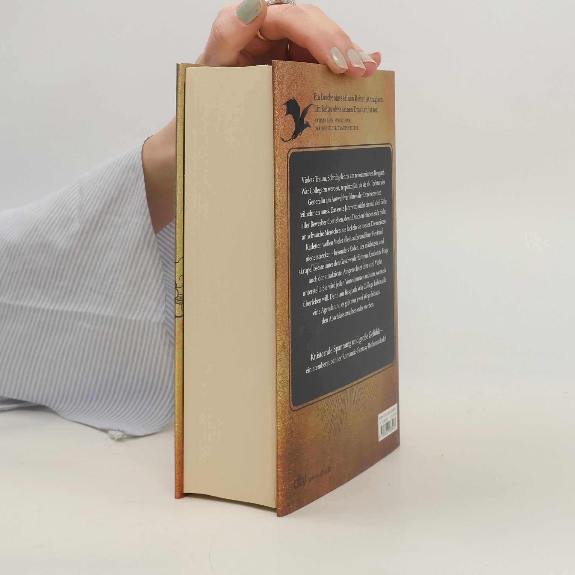Ein Drache ohne seinen Reiter ist tragisch. Ein Reiter ohne seinen Drachen ist tot. In wunderschöner, hochwertiger Ausstattung mit aufwendig veredeltem Schutzumschlag, gestaltetem Einband und farbigen Karten im Innenteil. Knisternde Spannung und große Gefühle – ein atemberaubender Romantic-Fantasy-Reihenauftakt! Perfekt für alle Fans von Jennifer L. Armentrout, Naomi Novik und Sarah J. Maas. Violets Traum, Schriftgelehrte am renommierten Basgiath War College zu werden, zerplatzt jäh, da sie als Tochter der Generalin am Auswahlverfahren der Drachenreiter teilnehmen muss. Das erste Jahr wird nicht einmal die Hälfte aller Bewerber überleben, denn Drachen binden keine schwachen Menschen, sie fackeln sie nieder. Die meisten Kadetten wollen Violet allein aufgrund ihrer Herkunft niederstrecken – besonders Xaden, der mächtigste und skrupelloseste unter den Geschwaderführern. Und ohne Frage auch der attraktivste. Ausgerechnet ihm wird Violet unterstellt. Sie wird jeden Vorteil nutzen müssen, wenn sie überleben will. Denn am Basgiath War College haben alle eine Agenda und es gibt nur zwei Wege hinaus: den Abschluss machen oder sterben.