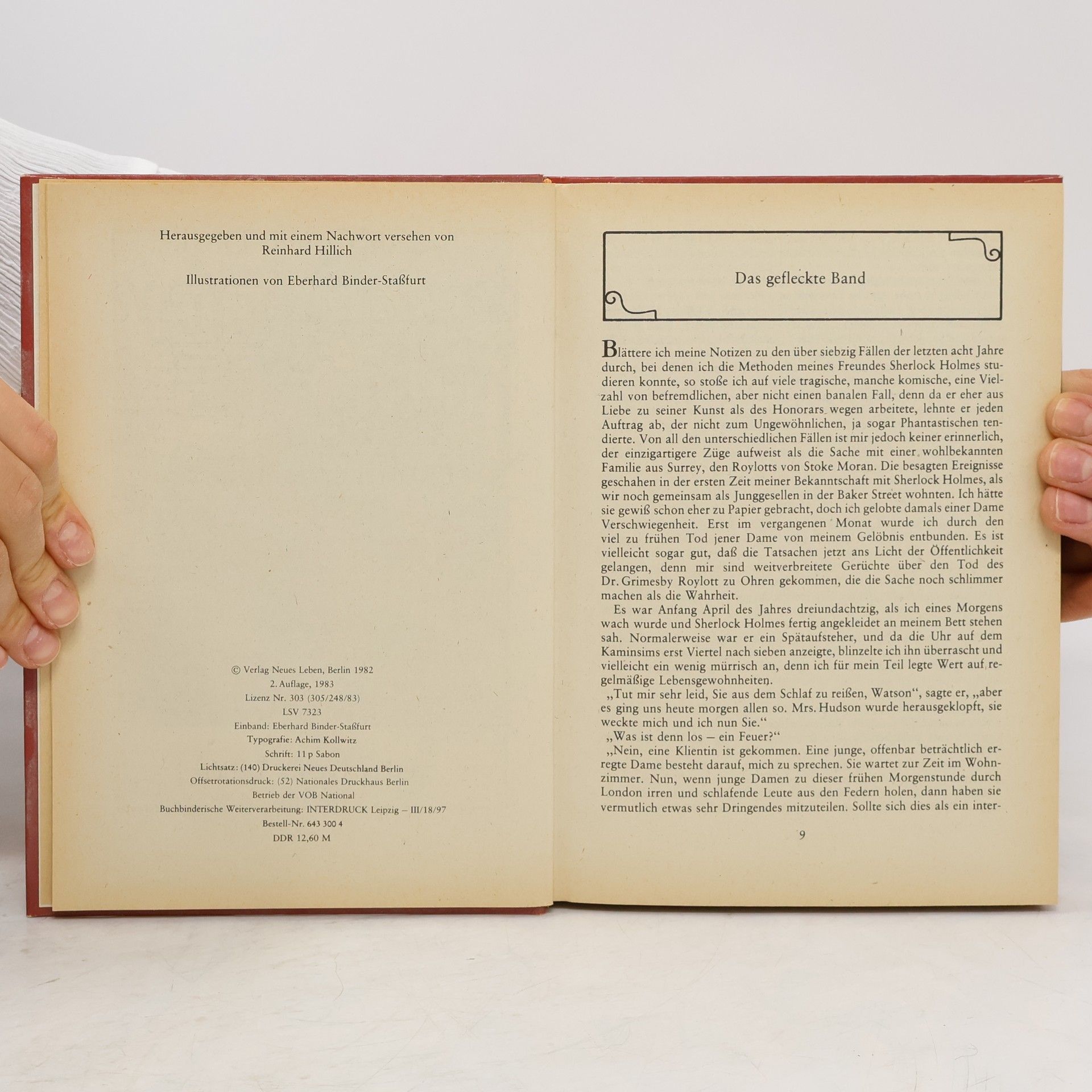London, Baker Street 221 B, hier wohnt Sherlock Holmes, manchmal auch sein Freund, Dr. Watson.Holmes' Wirtin hat viel zu erdulden. Nicht genug, dass in der ersten Etage ihres Hauses merkwürdige und oft zwielichtige Gestahlten ständig ein und aus gehen, hinzu kommen seine gelegentlichen Schießübungen im Wohnzimmer, die unheimlichen und übelriechenden chemischen Experimente, ein Hauch von Gewalt und Gefahr.Aber natürlich ist sie stolz auf Holmes, denn selbst Scotland Yard bittet ihn um Hilfe: Da müssen Mörder gesucht werden, die im Auftrag einer Geheimorganisation arbeiten und ihren Opfern als Vorboten fünf Apfelsinenkerne schicken, da ist ein Berylldiadem aus dem Kronschatz verschwunden oder ein Rennpferd auf mysteriöse Weise gestohlen worden, da spukt es in der alten Familiengruft, wird ein Kapitän, mit einer Harpune an die Wand gespießt, aufgefunden, eine Schlange als Mörder überführt...Phantasie, Mut und Scharfsinn, diese Eigenschaften helfen Sherlock Holmes, hinter die ausgeklügeltsten Verbrechen zu kommen.Enthält die Geschichten:Das gefleckte BandDie fünf ApfelsinenkerneDas Abenteuer mit dem BerylldiademSilver BlazeDie "Gloria Scott"Der griechische DolmetscherDer letzte FallDas Abenteuer mit dem zweiten BlutfleckDas Geheimnis von Wisteria LodgeDas Abenteuer mit dem Roten KreisDer sterbende DetektivDer Fall Thor-BrückeDas Abenteuer von Shoscombe Old PlaceDer pensionierte Farbenhändler
