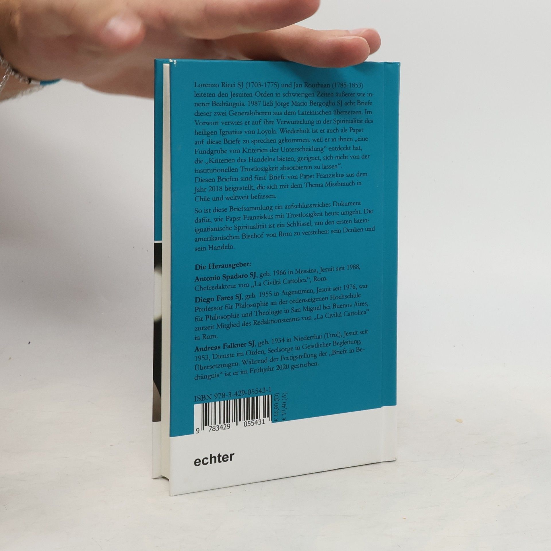 Lorenzo Ricci SJ (1703-1775) und Jan Roothaan (1785-1853) leiteten den Jesuiten-Orden in schwierigen Zeiten äußerer wie innerer Bedrängnis. 1987 ließ Jorge Mario Bergoglio SJ acht Briefe dieser zwei Generaloberen aus dem Lateinischen übersetzen. Im Vorwort verwies er auf ihre Verwurzelung in der Spiritualität des heiligen Ignatius von Loyola. Wiederholt ist er auch als Papst auf diese Briefe zu sprechen gekommen, weil er in ihnen „eine Fundgrube von Kriterien der Unterscheidung“ entdeckt hat, die „Kriterien des Handelns bieten, geeignet, sich nicht von der institutionellen Trostlosigkeit absorbieren zu lassen“. Diesen Briefen sind fünf Briefe von Papst Franziskus aus dem Jahr 2018, die sich mit dem Thema Missbrauch in Chile und weltweit befassen, beigestellt. So ist diese Briefsammlung ist ein aufschlussreiches Dokument dafür, wie Papst Franziskus mit Trostlosigkeit heute umgeht. Die ignatianische Spiritualität ist ein Schlüssel, um den ersten lateinamerikanischen Bischof von Rom zu verstehen: sein Denken und sein Handeln.