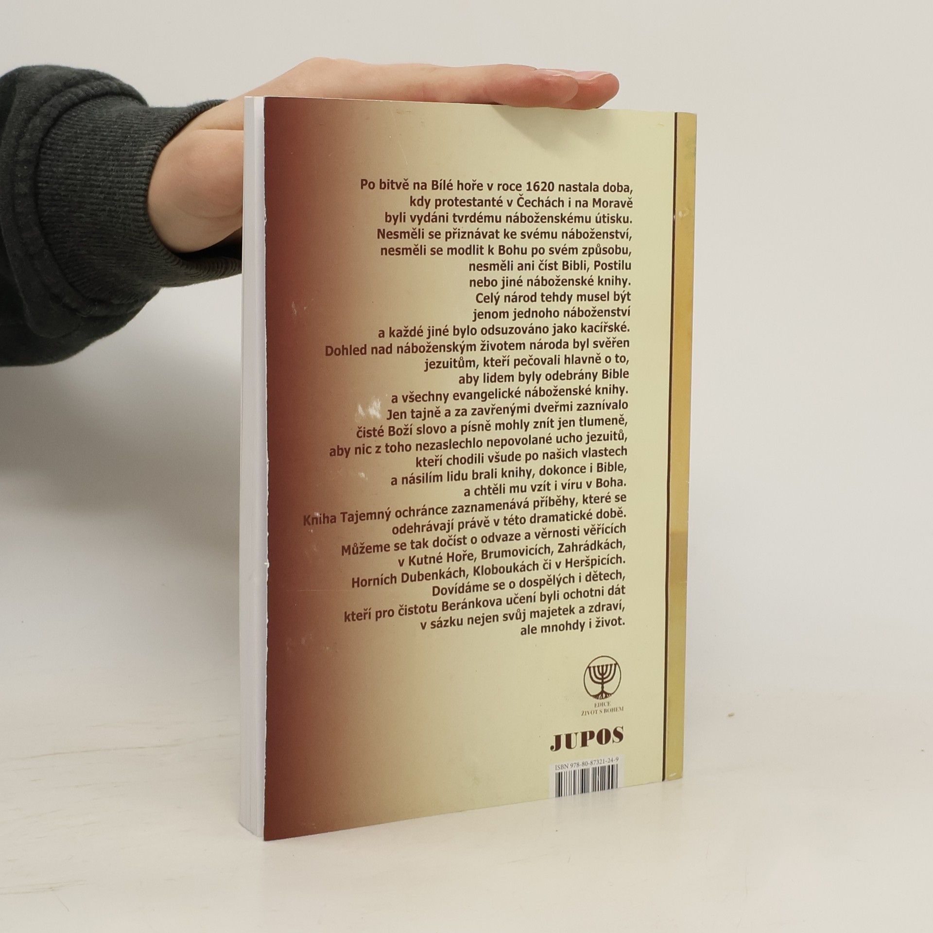 Po bitvě na Bílé hoře v roce 1620 nastala doba, kdy protestanté v Čechách i na Moravě byli vydáni tvrdému náboženskému útisku. Nesměli se přiznávat ke svému náboženství, nesměli se modlit k Bohu po svém způsobu, nesměli ani číst Bibli, Postilu nebo jiné náboženské knihy. Celý národ tehdy musel být jenom jednoho náboženství a každé jiné bylo odsuzováno jako kacířské. Dohled nad náboženským životem národa byl svěřen jezuitům, kteří pečovali hlavně o to, aby lidem byly odebrány Bible a všechny evangelické náboženské knihy. Jen tajně a za zavřenými dveřmi zaznívalo čisté Boží slovo a písně mohly znít jen tlumeně, aby nic z toho nezaslechlo nepovolané ucho jezuitů, kteří chodili všude po našich vlastech a násilím lidu brali knihy, dokonce i Bible, a chtěli mu vzít i víru v Boha. Kniha Tajemný ochránce zaznamenává příběhy, které se odehrávají právě v této dramatické době. Můžeme se tak dočíst o odvaze a věrnosti věřících v Kutné Hoře, Brumovicích, Zahrádkách, Horních Dubenkách, Kloboukách či v Heršpicích. Dovídáme se o dospělých i dětech, kteří pro čistotu Beránkova učení byli ochotni dát v sázku nejen svůj majetek a zdraví, ale mnohdy i život.
