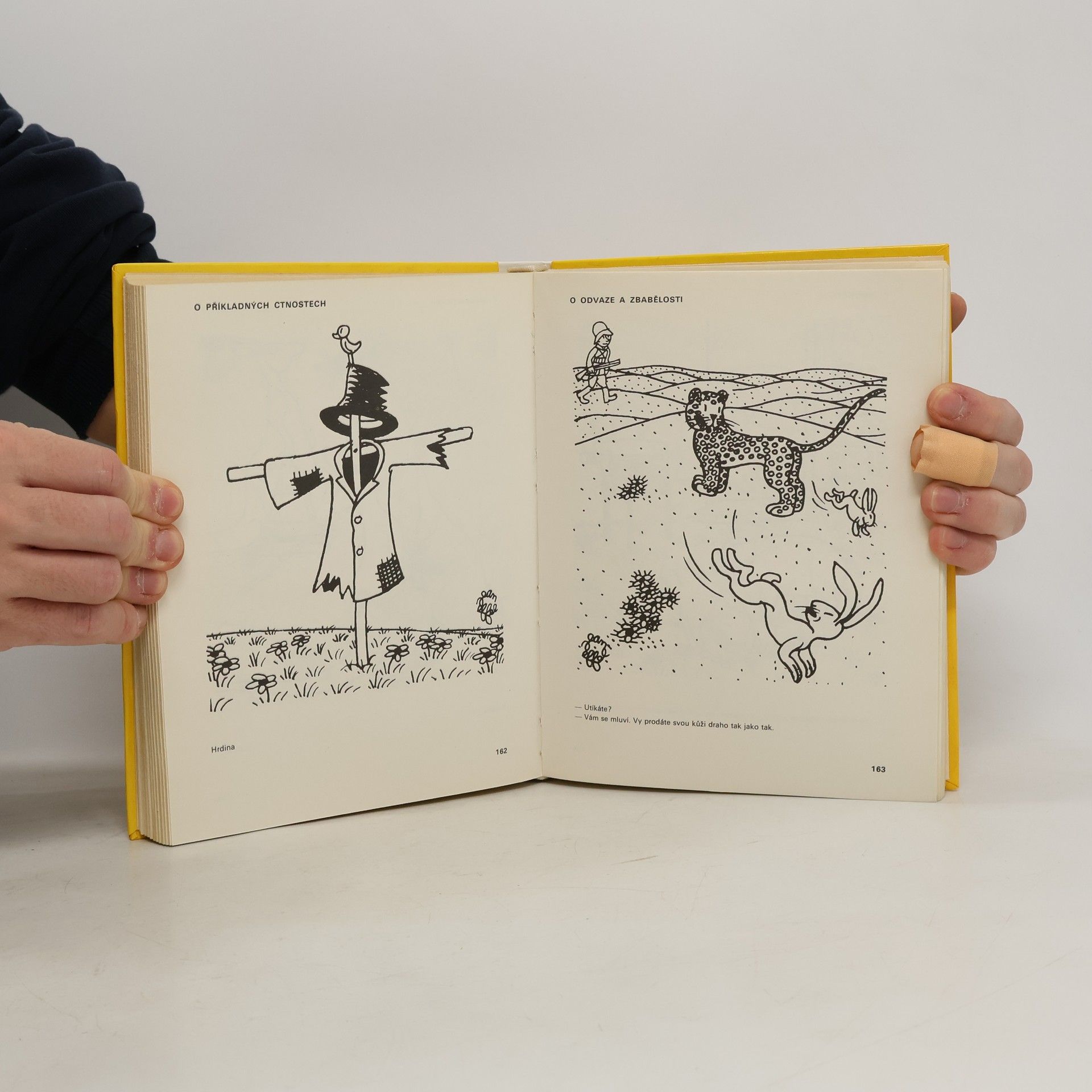 Rozmarné kresby s vtipným doprovodem vytvářejí moderní bajku 20. století.