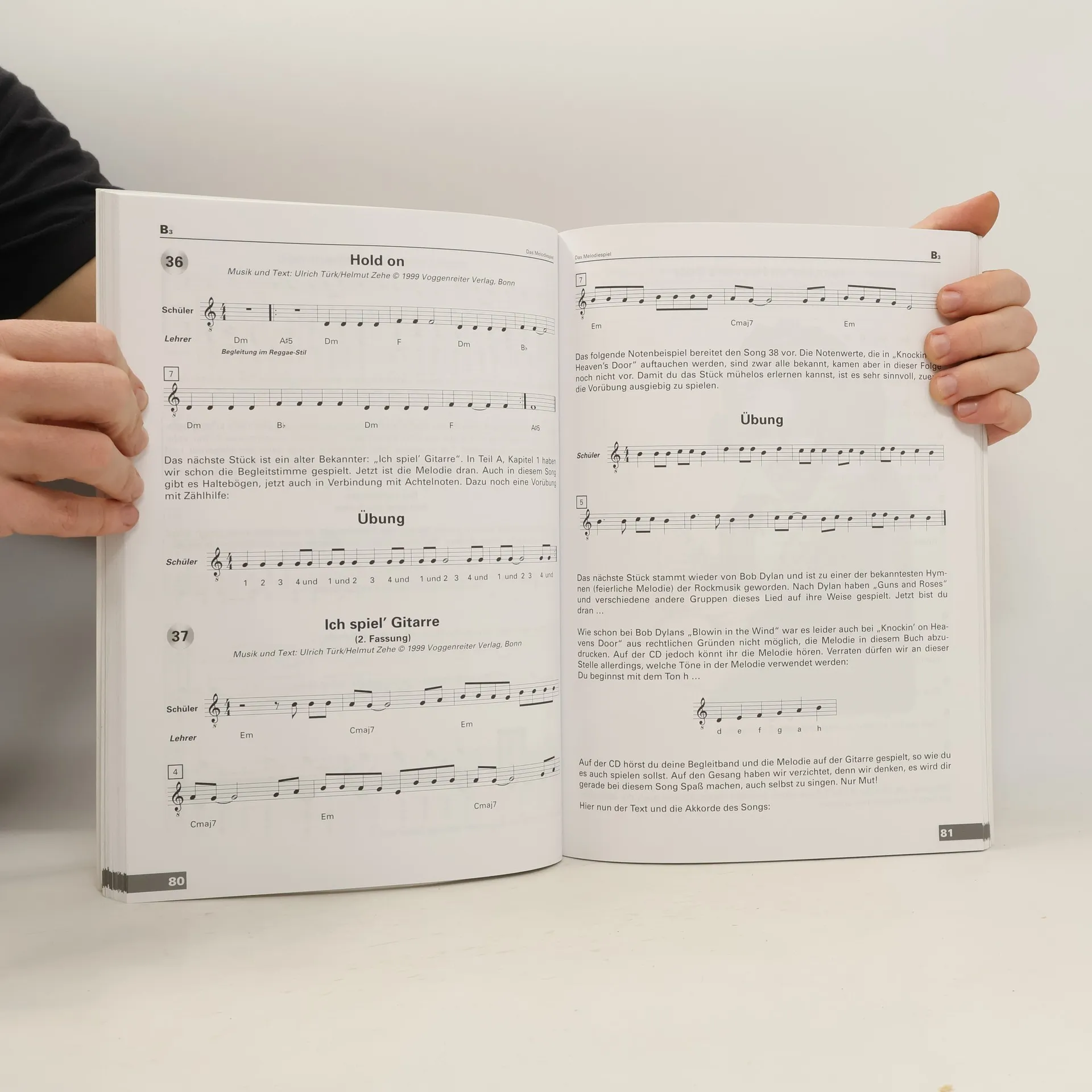 Eine Gitarrenschule, die dem Schüler von Anfang an alle musikalischen Welten offen hält und nicht schon frühzeitig in nur eine Richtung führt. Eine Gitarrenschule die dem Anfänger und Schüler mit Beispielen aus der Popmusik geläufiges Unterrichtsmaterial liefert und mit sorgfältig ausgewählten Beispielen den Zugang zur klassischen „ernsten“ Musik ermöglicht. Liedbegleitung, Melodiespiel, erste solistische Stücke und eine einfache und verständliche Einführung in die Notenschrift und Musiklehre. Die vermittelte Spieltechnik hilft später in jeder Stilrichtung weiter. Für Anfänger und Fortgeschrittene!