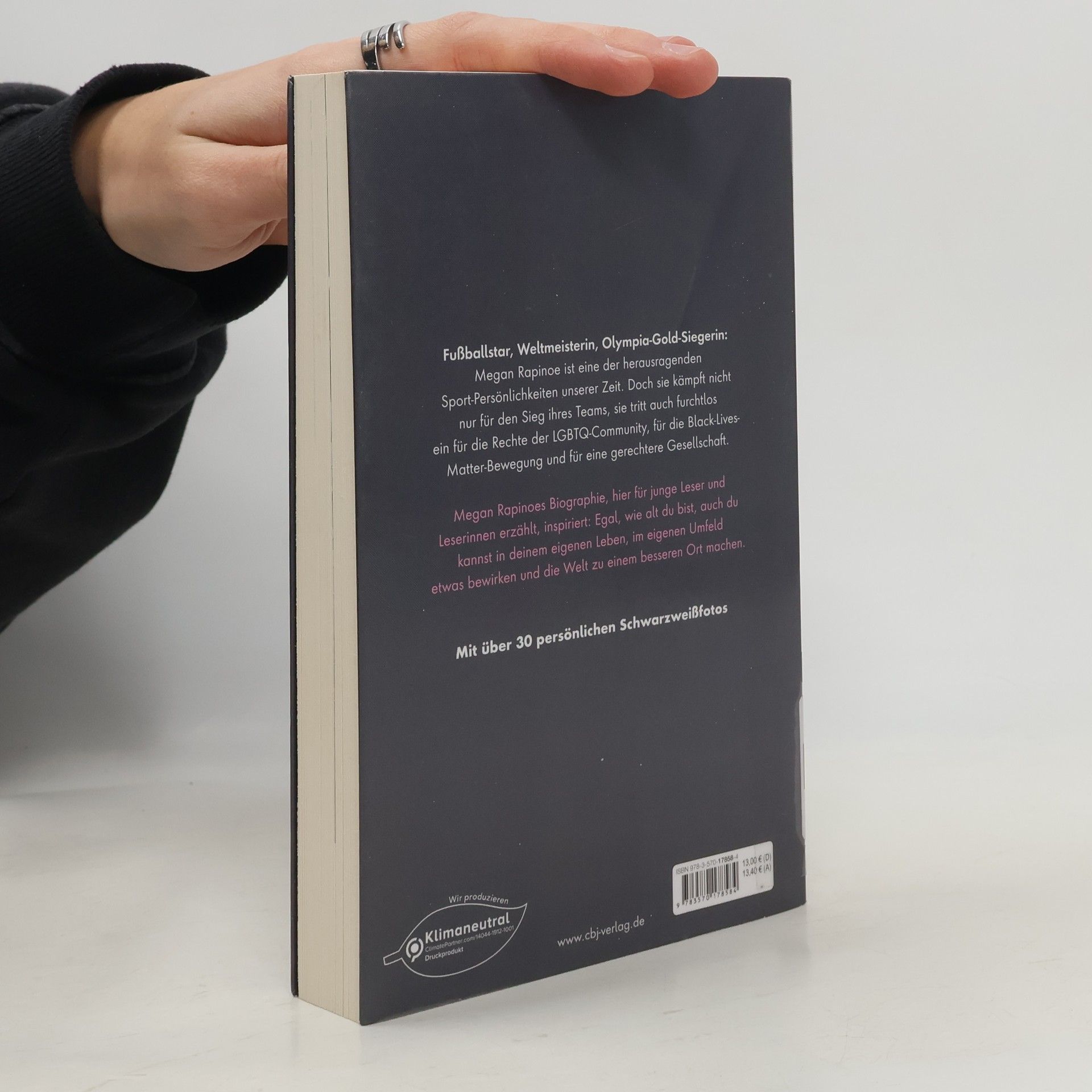 »An all die LGBTQIA+ Kids da draußen: Ich sehe euch. Ich höre euch. Und ich werde für euch kämpfen, mit jedem Atemzug.« Megan Rapinoe: Fußballstar, Weltmeisterin, Olympia-Gold-Siegerin und furchtlose Kämpferin für die Rechte der LGBTQ-Community und für die Black Lives Matter-Bewegung. Ihr solidarischer Kniefall für den Schwarzen Football-Spieler Colin Kaepernik in 2016 ist unvergessen, ebenso ihre Kampfansage gegen Donald Trump. Für ihre Vision von einer gerechteren Welt erhebt Rapinoe ihre Stimme unermüdlich gegen Rassismus und Ausgrenzung, gegen Unrecht und Ungerechtigkeit. Nahbar und lebendig erzählt sie, wie sehr ihr Leben immer schon von mutigen Entscheidungen und dem Verteidigen ihrer Werte geprägt war. Und sie inspiriert ihre Leser*innen, wie alt sie auch sein mögen, in diesem einen Leben im eigenen Umfeld etwas zu bewirken und die Welt zu einem besseren Ort zu machen. Fesselnd, inspirierend und auf Augenhöhe, erzählt von der Fußball-Ausnahmesportlerin Megan Rapinoe. Mit über 30 persönlichen Schwarzweißfotos.