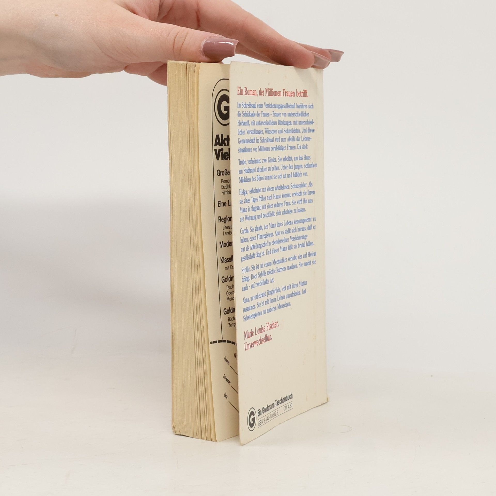 In diesem Roman, geprägt von Marie Louise Fischers einzigartigem Stil, stehen eine Gruppe von Frauen im Fokus, die im Schreibsaal einer Versicherungsgesellschaft arbeiten. Ihre Lebenssituationen könnten unterschiedlicher nicht sein: Trude kämpft darum, das Haus am Stadtrand abzuzahlen, während Helga sich von ihrem untreuen Ehemann trennt. Carola erkennt, dass ihre Beziehung zu ihrem angeblichen Traummann auf Illusion und Betrug basiert. Sybille entscheidet sich, ihre Beziehung zu beenden, um auf fragwürdige Weise Karriere zu machen, und Alma lebt unzufrieden mit ihrer Mutter zusammen. Marie Louise Fischer, 1922 in Düsseldorf geboren, arbeitete nach ihrem Studium als Lektorin bei der Prag-Film. 1945 wurde sie interniert und musste über anderthalb Jahre Zwangsarbeit leisten, da sie die Goldene Stadt nicht rechtzeitig verlassen konnte. Mit ihrem Kriminalroman "Zerfetzte Segel" feierte sie 1951 ihren ersten großen Erfolg. Fortan etablierte sie sich als erfolgreiche Unterhaltungs- und Jugendschriftstellerin. Ihre über 100 Romane und Krimis sowie mehr als 50 Kinder- und Jugendbücher wurden in 23 Sprachen übersetzt und erreichten in Deutschland eine Gesamtauflage von über 70 Millionen Exemplaren. Die beliebte Schriftstellerin verstarb am 2. April 2005 in Prien am Chiemsee im Alter von 82 Jahren.