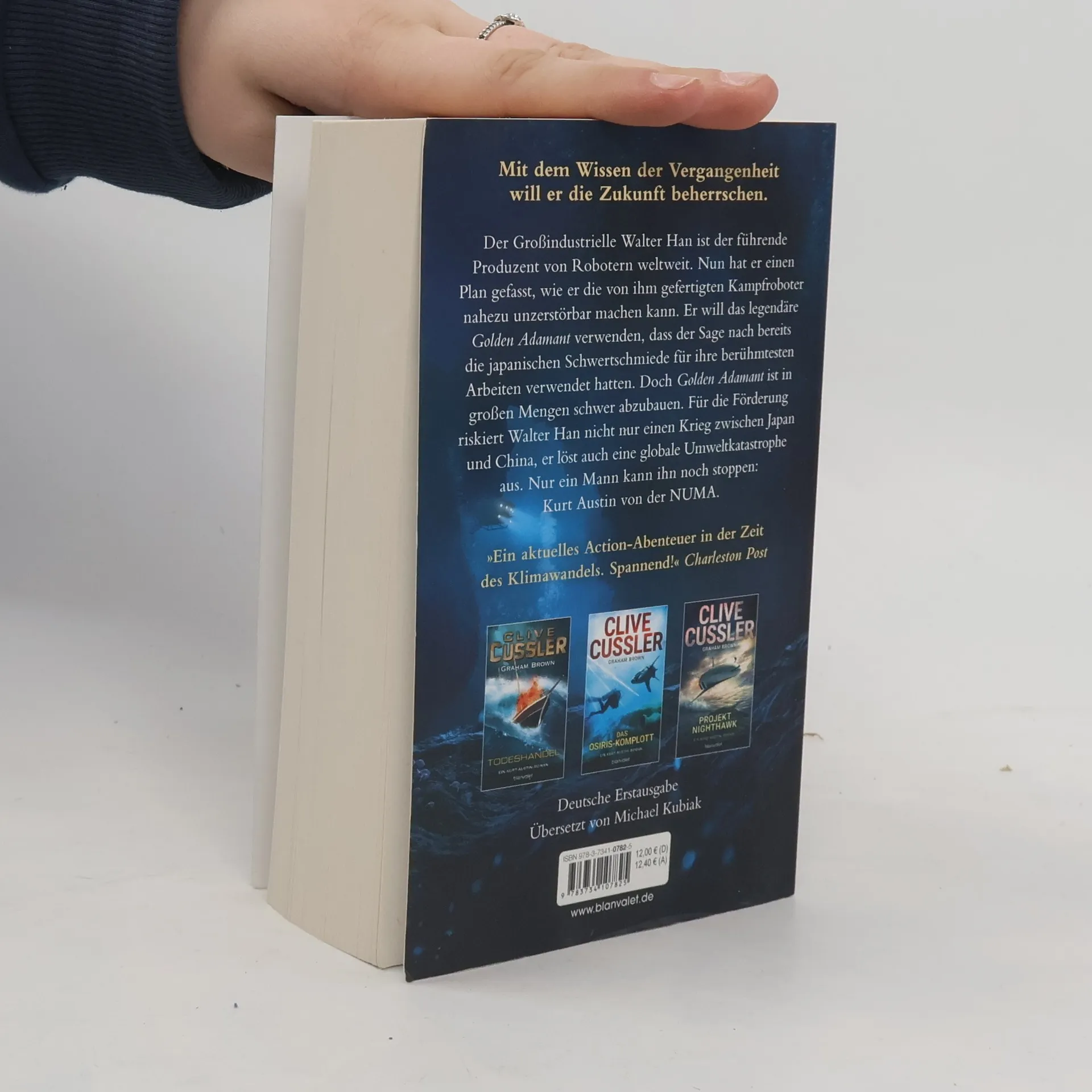 Mit dem Wissen der Vergangenheit will er die Zukunft beherrschen. Der Großindustrielle Walter Han ist der führende Produzent von Robotern weltweit. Nun hat er einen Plan gefasst, wie er die von ihm gefertigten Kampfroboter nahezu unzerstörbar machen kann. Er will das legendäre Golden Adamant verwenden, dass der Sage nach bereits die japanischen Schwertschmiede für ihre berühmtesten Arbeiten verwendet hatten. Doch Golden Adamant ist in großen Mengen schwer abzubauen. Für die Förderung riskiert Walter Han nicht nur einen Krieg zwischen Japan und China, er löst auch eine globale Umweltkatastrophe aus. Nur ein Mann kann ihn noch stoppen: Kurt Austin von der NUMA. Jeder Band ein Bestseller und einzeln lesbar. Lassen Sie sich die anderen Abenteuer von Kurt Austin nicht entgehen!