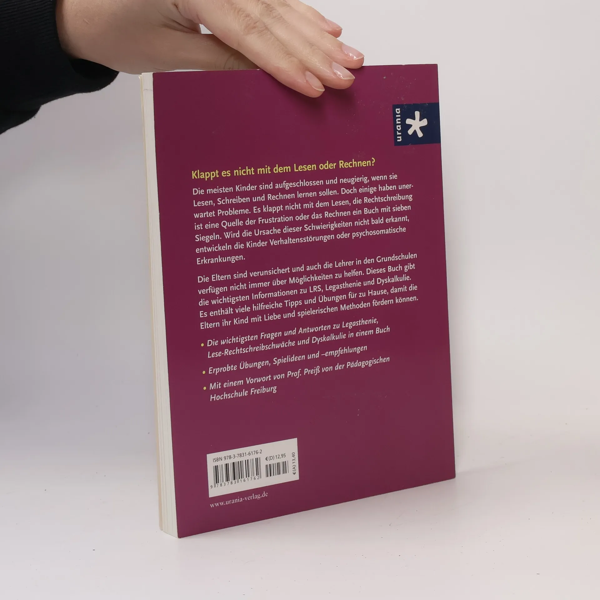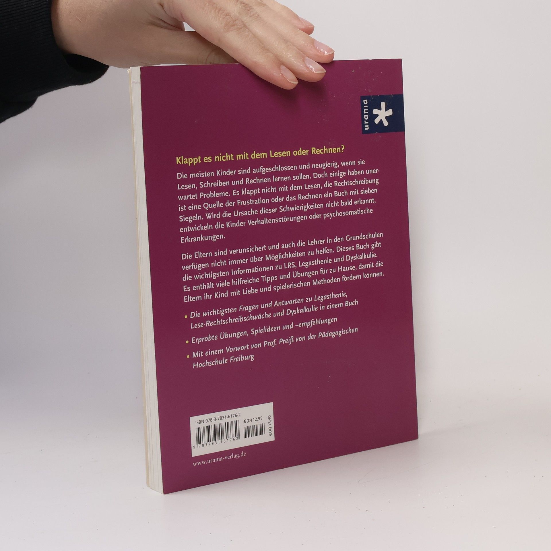 Wie kommt es, dass mein Kind einfache Wörter immer falsch schreibt? Mein Sohn kann sich keine Zahlen merken. Mein Kind will nicht mehr zur Schule gehen. Meine Tochter kann nicht mit dem 1 x 1 rechnen, aber es perfekt aufsagen. Was ist eine Teilleistungsstörung? Was ist Legasthenie, welche Testverfahren und Fördermöglichkeiten gibt es, was sollte die Schule machen? Manchmal treten auch Legasthenie und Dyskalkulie gemeinsam auf. Gegenüber der Lese-Rechtschreibschwäche, die durch Training überwindbar ist, begleiten sie ein Leben lang. Wie können Eltern und Lehrer helfen? Diese und andere Fragen werden hier kompetent und praxisnah geklärt und verständlich beantwortet. Die Autorin stellt viele Übungen und Spiele vor, mit dem die Eltern dem Kind helfen können, durch spielerisches Training und geduldige Wiederholung seine Schwächen zu überwinden. Mit einem Vorwort von Prof. Preiß von der Pädagogischen Hochschule Freiburg