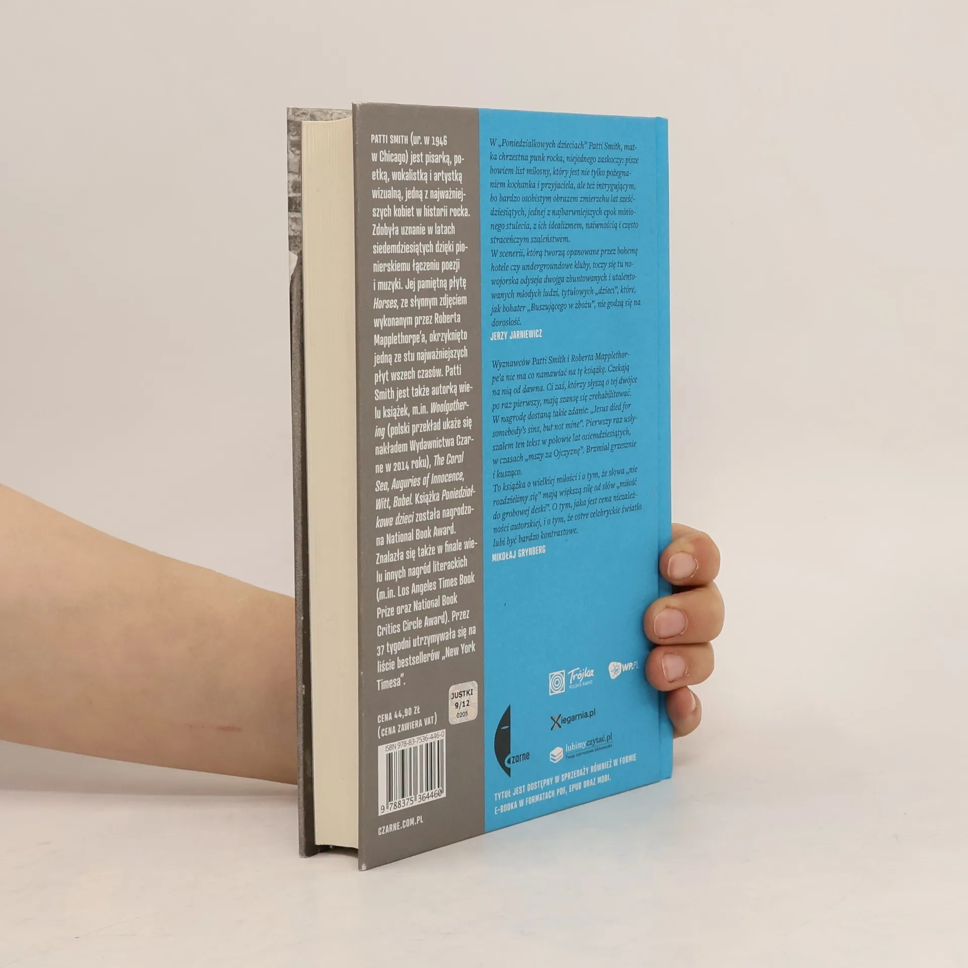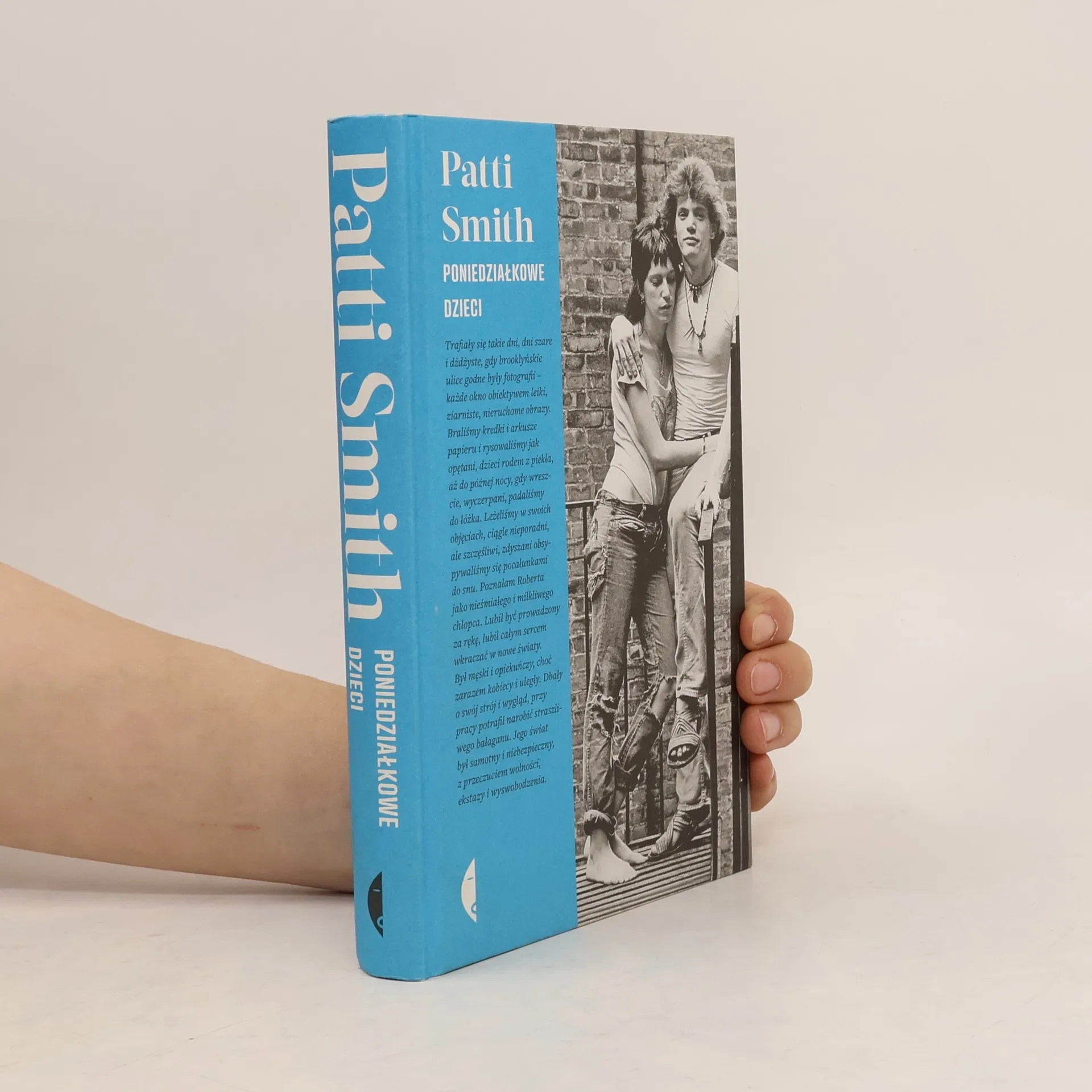 Było to lato, gdy umarł Coltrane, lato miłości i zamieszek, lato, gdy przypadkowe spotkanie na Brooklynie pchnęło dwoje młodych ludzi na drogę sztuki, miłości i wspólnej pracy. Patti Smith została poetką i piosenkarką, a Robert Mapplethorpe rozwijał swój prowokacyjny styl w fotografii. Niewinni, oddani sztuce, przemierzali Nowy Jork od Coney Island po Czterdziestą Drugą Ulicę, aż dotarli do słynnego okrągłego stołu w lokalu Kansas City, w którym brylował krąg przyjaciół i wyznawców Andy’ego Warhola. W 1969 roku para zamieszkała w hotelu Chelsea i weszła do środowiska ludzi okrytych – dobrą i złą – sławą, wpływowych artystów z barwnej cyganerii. To tam dwoje dzieciaków zawarło pakt, że będą się o siebie troszczyć. Poniedziałkowe dzieci zaczynają się jako historia miłosna, a kończą jako elegia. To także hołd złożony Nowemu Jorkowi na przełomie lat sześćdziesiątych i siedemdziesiątych, jego pięknu i jego demonom. To prawdziwa baśń, portret dwojga młodych artystów w przededniu sławy.
