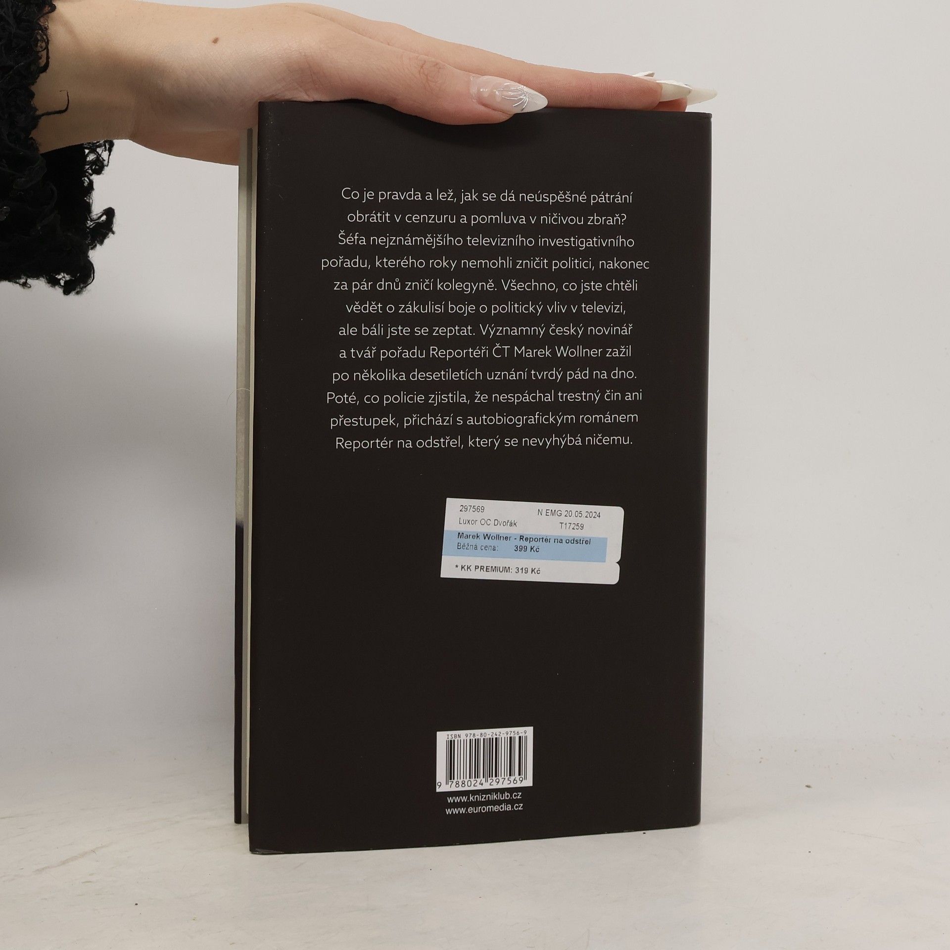 Kde končí svoboda slova, co je pravda a lež, jak se dá neúspěšné pátrání obrátit v cenzuru a pomluva v ničivou zbraň? Šéfa nejznámějšího televizního investigativního pořadu, kterého roky nemohli zničit politici, nakonec za pár dnů zničí kolegyně. Všechno, co jste chtěli vědět o zákulisí boje o politický vliv v televizi, ale báli jste se zeptat. Významný český novinář a zakladatel pořadu Reportéři ČT, Marek Wollner, zažil po několika desetiletích uznání tvrdý pád na dno. Poté, co jej soud zprostil všech obvinění, přichází s autobiografickým románem, který se nevyhýbá ničemu.