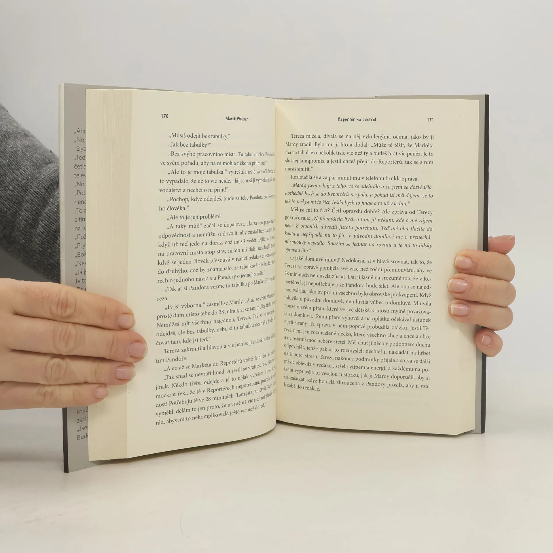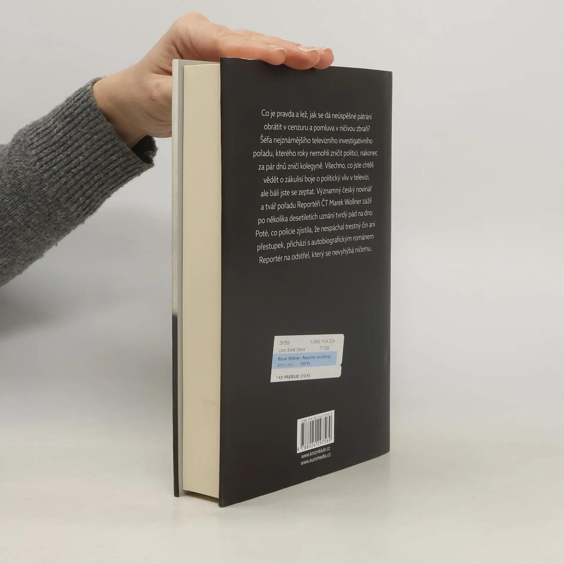 Kde končí svoboda slova, co je pravda a lež, jak se dá neúspěšné pátrání obrátit v cenzuru a pomluva v ničivou zbraň? Šéfa nejznámějšího televizního investigativního pořadu, kterého roky nemohli zničit politici, nakonec za pár dnů zničí kolegyně. Všechno, co jste chtěli vědět o zákulisí boje o politický vliv v televizi, ale báli jste se zeptat. Významný český novinář a zakladatel pořadu Reportéři ČT, Marek Wollner, zažil po několika desetiletích uznání tvrdý pád na dno. Poté, co jej soud zprostil všech obvinění, přichází s autobiografickým románem, který se nevyhýbá ničemu.