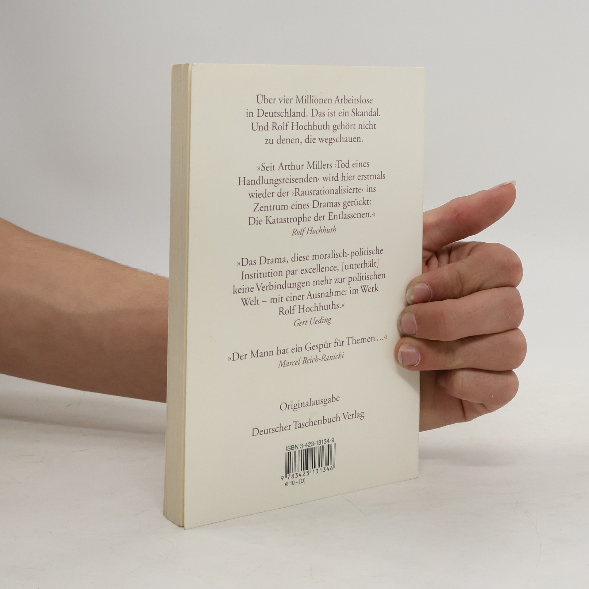 »Der Mann hat ein Gespür für Themen « Marcel Reich-Ranicki Über vier Millionen Arbeitslose in Deutschland. Das ist ein Skandal. Und Rolf Hochhuth gehört nicht zu denen, die wegschauen. Bankvorstände, die zweistellige Millionengehälter einstreichen, Milliardengewinne erzielen und Tausende auf die Straße setzen, sind ihm ein Greuel. Und das sagt er auch. Den Mächtigen, die seine Kritik trifft, ist das sehr peinlich und ihren feinsinnigen Freunden in der Kulturindustrie natürlich erst recht. Das Ergebnis solcher Konflikte findet sich in diesem Band: ein kleines Gedicht von 16 Zeilen, ein Schauspiel, das vor dem Bundesverfassungsgericht in Karlsruhe endet, und ein zweites, das an die Zensur zu Zeiten von Molière erinnert.