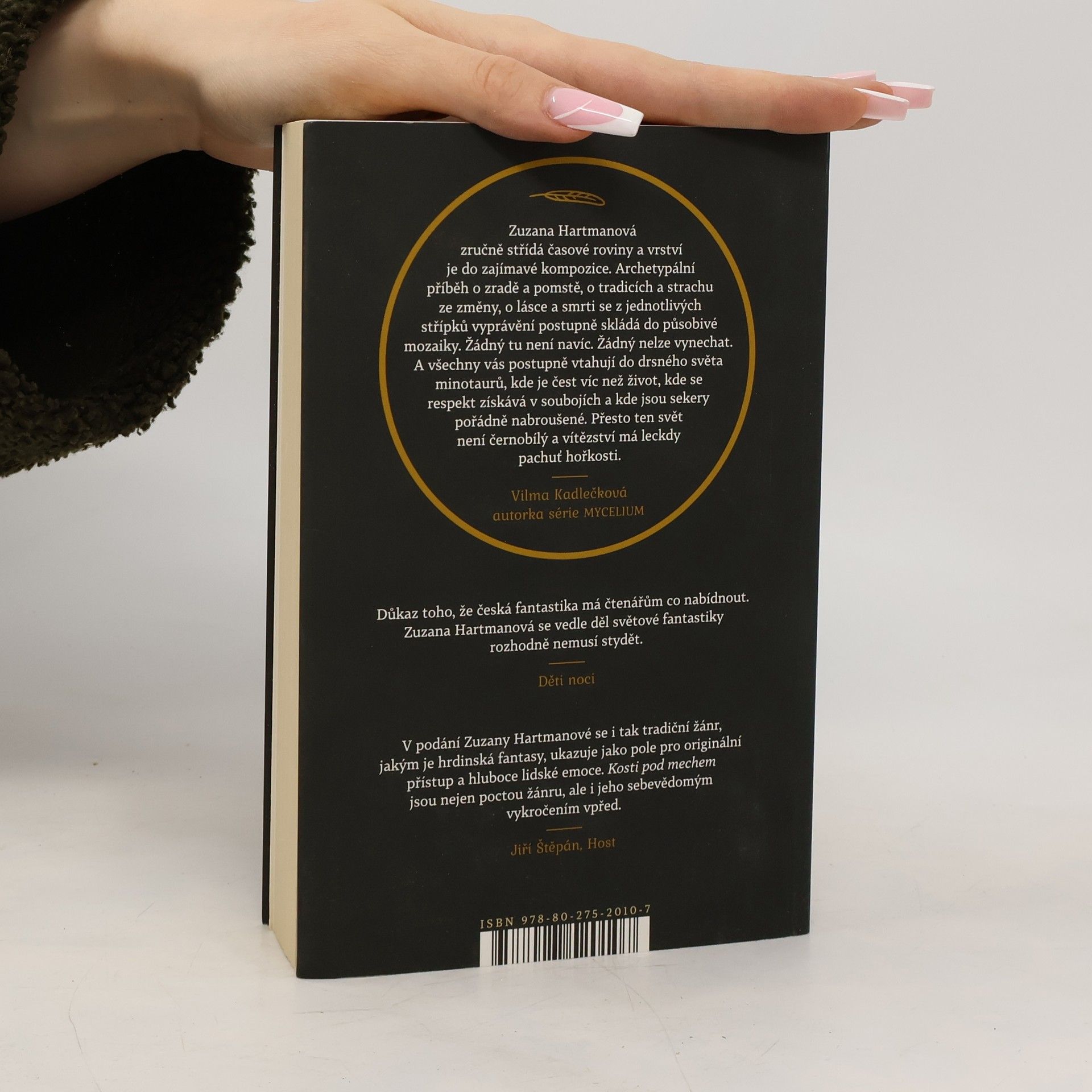 Originální pocta hrdinské fantasy z magického světa Accadu, kde minotauři bojují o svou budoucnost. Čest je víc než život. Tak praví Kodex, jímž se minotauři z accadských Plání řídí již dlouhé generace. Nyní je ale vše jinak a dávné hodnoty se mění v prach. Náčelník spojených klanů ví, kdo by mohl minotaurům vrátit jejich ztracenou slávu a dovést je k novým zítřkům. Otázkou však zůstává, zda bude ochoten zaplatit cenu, kterou taková změna vyžaduje obzvlášť bude-li vyčíslena zmařenými životy. Tradice a zvyky jsou překrucovány, bohové se odvracejí a stále víc minotaurů zjišťuje, že čest možná není všechno. Zuzana Hartmanová se v Kostech pod mechem prvním dílu stejnojmenné dilogie vrací do magického světa Accadu a vzdává poctu hrdinské fantasy.