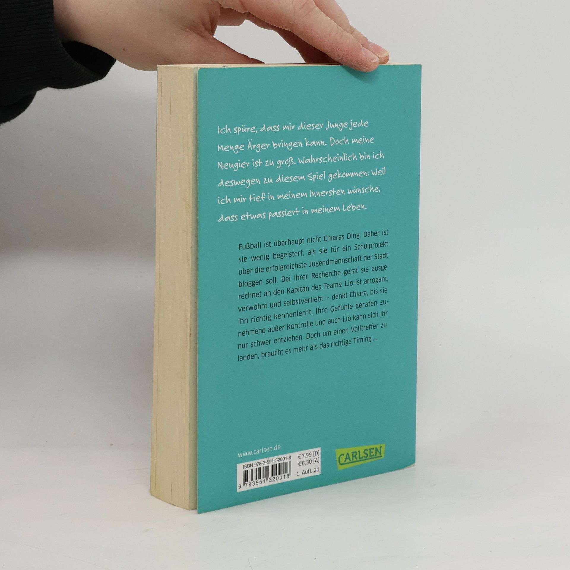 Keine Halbzeitpause für die Liebe. Fußball ist überhaupt nicht Chiaras Ding. Daher ist sie wenig begeistert, als sie für ein Schulprojekt über die erfolgreichste Jugendmannschaft der Stadt bloggen soll. Bei ihrer Recherche gerät sie ausgerechnet an den Kapitän des Teams. Lio ist arrogant, verwöhnt und selbstverliebt – denkt Chiara, bis sie ihn richtig kennenlernt. Ihre Gefühle geraten zunehmend außer Kontrolle und auch Lio kann sich ihr nur schwer entziehen. Doch um einen Volltreffer zu landen, braucht es mehr als das richtige Timing … Eine rasante Liebesgeschichte aus zwei Perspektiven erzählt!