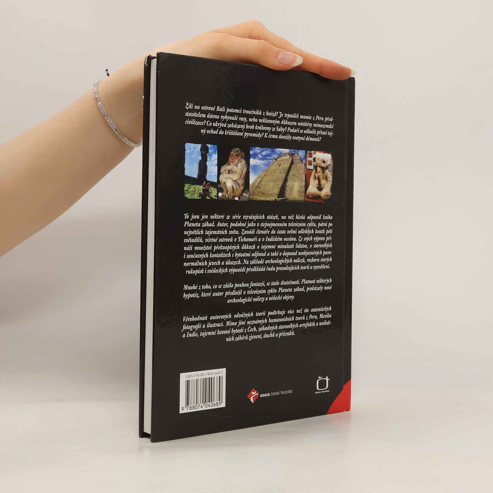 Žili na ostrově Bali potomci trosečníků z hvězd? Je trpasličí mumie z Peru představitelem dávno vyhynulé rasy, nebo neklamným důkazem návštěvy mimozemské civilizace? Co ukrývá zakázaný hrob královny ze Sáby? Podaří se odhalit přísně tajný vchod do křišťálové pyramidy? K čemu sloužily svatyně démonů? To jsou jen některé ze série vzrušujících otázek, na něž hledá odpověď kniha Planeta záhad. Autor, podobně jako v stejnojmenném televizním cyklu, pátrá po největších tajemstvích světa. Zavádí čtenáře do mnohdy velmi odlehlých koutů pěti světadílů, včetně mnoha ostrovů v Tichomoří a v Indickém oceánu. Ze svých výprav přináší množství překvapivých důkazů o tajemné minulosti lidstva, o starověkých i současných kontaktech s bytostmi odjinud a také o doposud neobjasněných paranormálních jevech a úkazech. Na základě archeologických nálezů, rozboru starých rukopisů i svědeckých výpovědí předkládá řadu provokujících teorií a vysvětlení. Mnohé z toho, co se zdálo pouhou fantazií, se stalo skutečností. Platnost některých hypotéz, které autor předložil v televizním cyklu Planeta záhad, prokázaly nové archeologické nálezy a vědecké objevy. Věrohodnost autorových odvážných teorií podtrhuje více než osmdesát autentických fotografií a ilustrací. Mimo jiné neznámých humanoidních tvorů z Peru, Mexika a Indie, tajemné kovové bytosti z Čech, záhadných starověkých artefaktů a unikátních záběrů zjevení, duchů a přízraků.