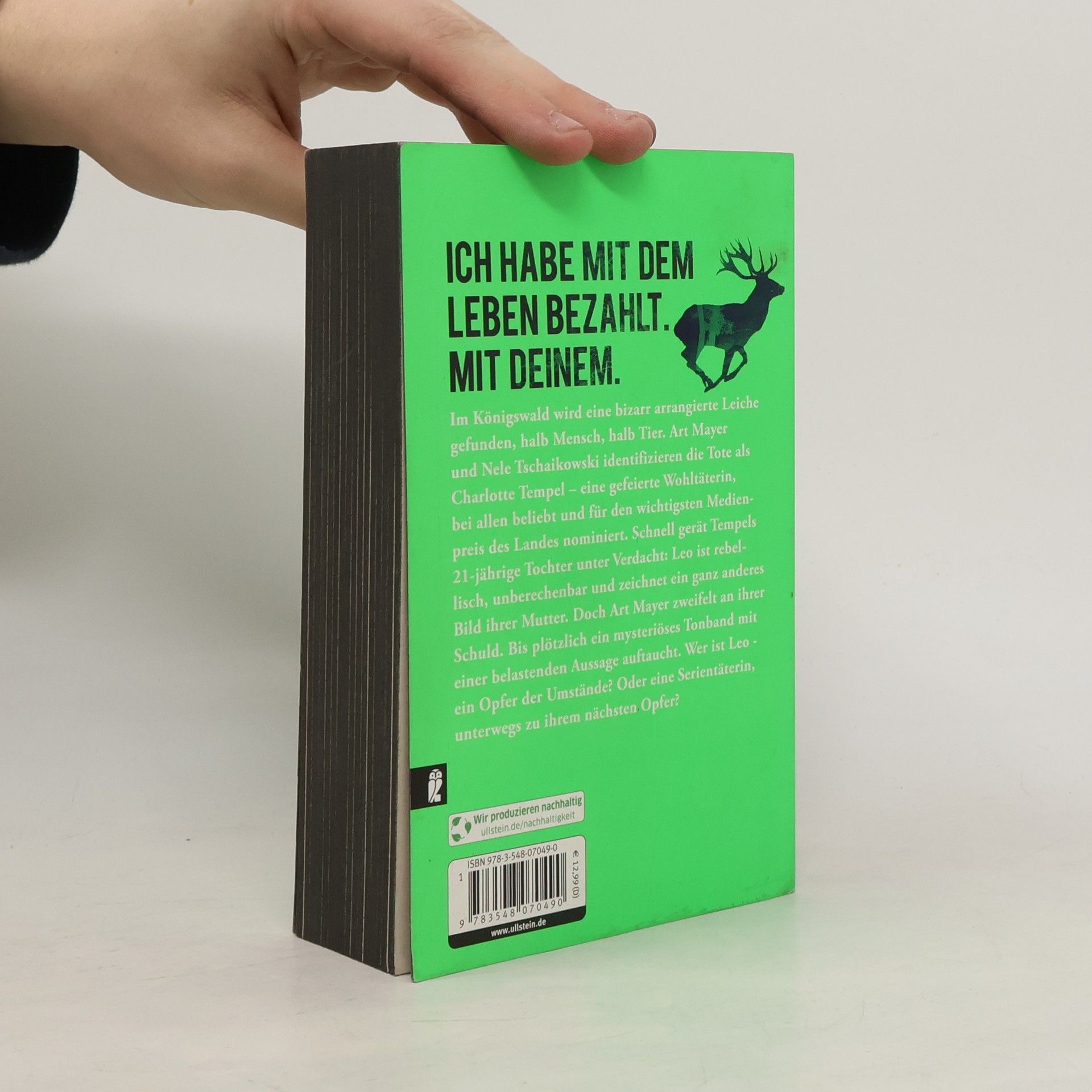 Ich habe mit dem Leben bezahlt. Mit deinem. Im Königswald wird eine bizarr arrangierte Leiche gefunden, halb Mensch, halb Tier. Art Mayer und Nele Tschaikowski identifizieren die Tote als Charlotte Tempel – eine gefeierte Wohltäterin, bei allen beliebt und für den wichtigsten Medienpreis des Landes nominiert. Schnell gerät Tempels 21-jährige Tochter unter Verdacht: Leo ist rebellisch, unberechenbar und hat ein schwieriges Verhältnis zu ihrer Mutter. Doch Art Mayer zweifelt an ihrer Schuld. Bis plötzlich ein mysteriöses Tonband mit einer belastenden Aussage auftaucht. Plötzlich erscheint Leo in einem ganz anderen Licht - ist sie ein Opfer der Umstände? Oder eine Serientäterin, unterwegs zu ihrem nächsten Opfer? Wer den Thriller des Jahres sucht, muss Raabe lesen.