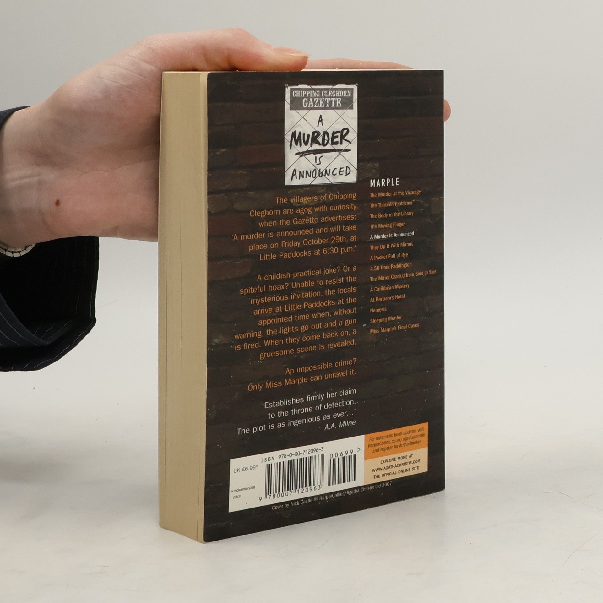 The Villagers Of Chipping Cleghorn, Including Jane Marple, Are Agog With Curiosity Over An Advertisement In The Local Gazette Which Reads: 'A Murder Is Announced And Will Take Place On Friday October 29Th, At Little Paddocks At 6.30 P.M.' A Childish Practical Joke? Or A Hoax Intended To Scare Poor Letitia Blacklock? Unable To Resist The Mysterious Invitation, A Crowd Begins To Gather At Little Paddocks At The Appointed Time When, Without Warning, The Lights Go Out&