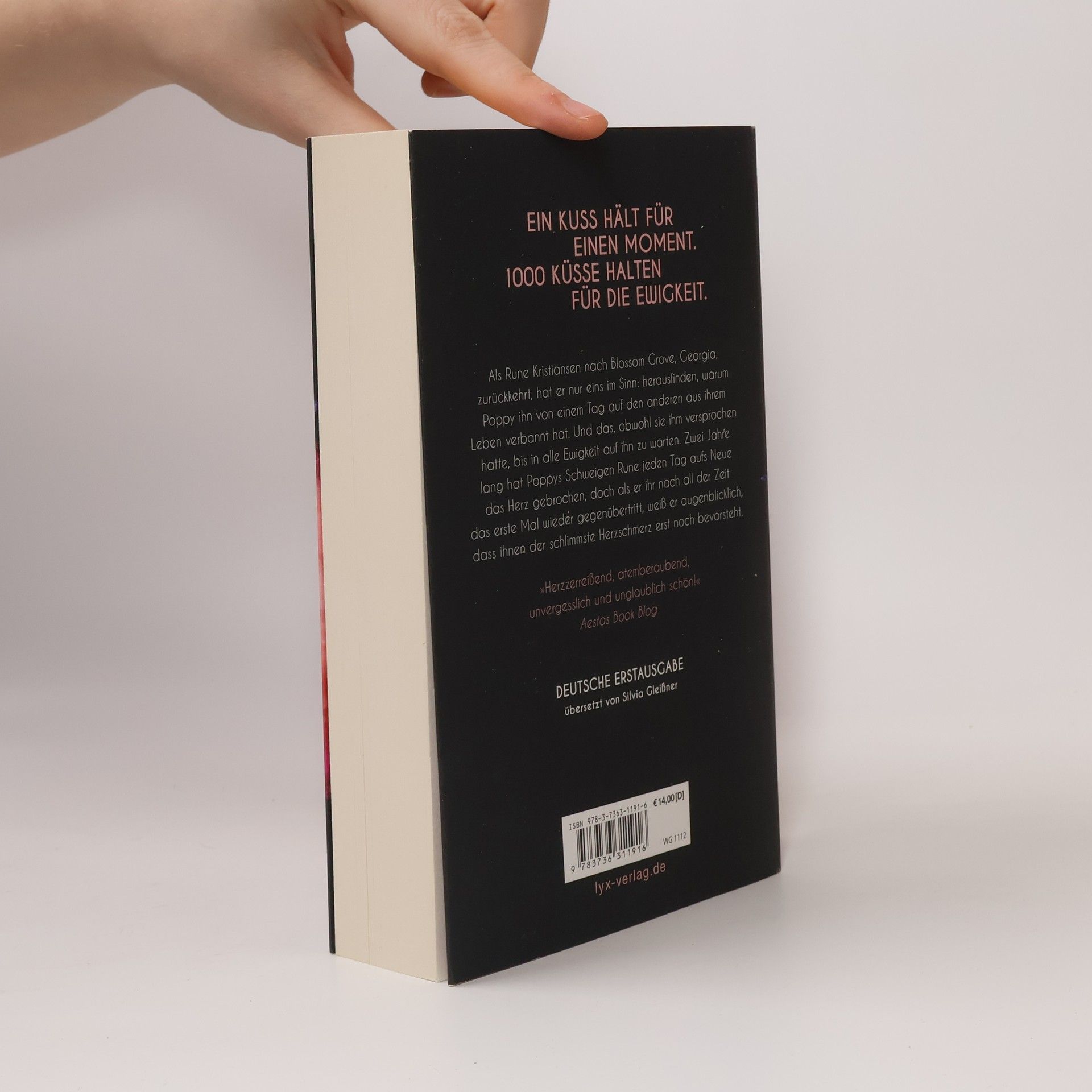 Ein Kuss hält nur für einen Moment. 1000 Küsse halten für die Ewigkeit Als Rune Kristiansen nach Blossom Grove, Georgia, zurückkehrt, hat er nur eins im Sinn: herausfinden, warum Poppy ihn von einem Tag auf den anderen aus ihrem Leben verbannt hat. Und das, obwohl sie ihm versprochen hatte, bis in alle Ewigkeit auf ihn zu warten. Zwei Jahre lang hat Poppys Schweigen Rune jeden Tag aufs Neue das Herz gebrochen, doch als er ihr nach all der Zeit das erste Mal wieder gegenüber tritt, weiß er augenblicklich, dass der schlimmste Schmerz ihnen erst noch bevorsteht. „Herzzerreißend, atemberaubend, unvergesslich und unglaublich schön!“ AESTAS BOOK BLOG Dieser Roman ist bereits als E-Book unter dem Titel „A Thousand Boy Kisses“ erschienen.
