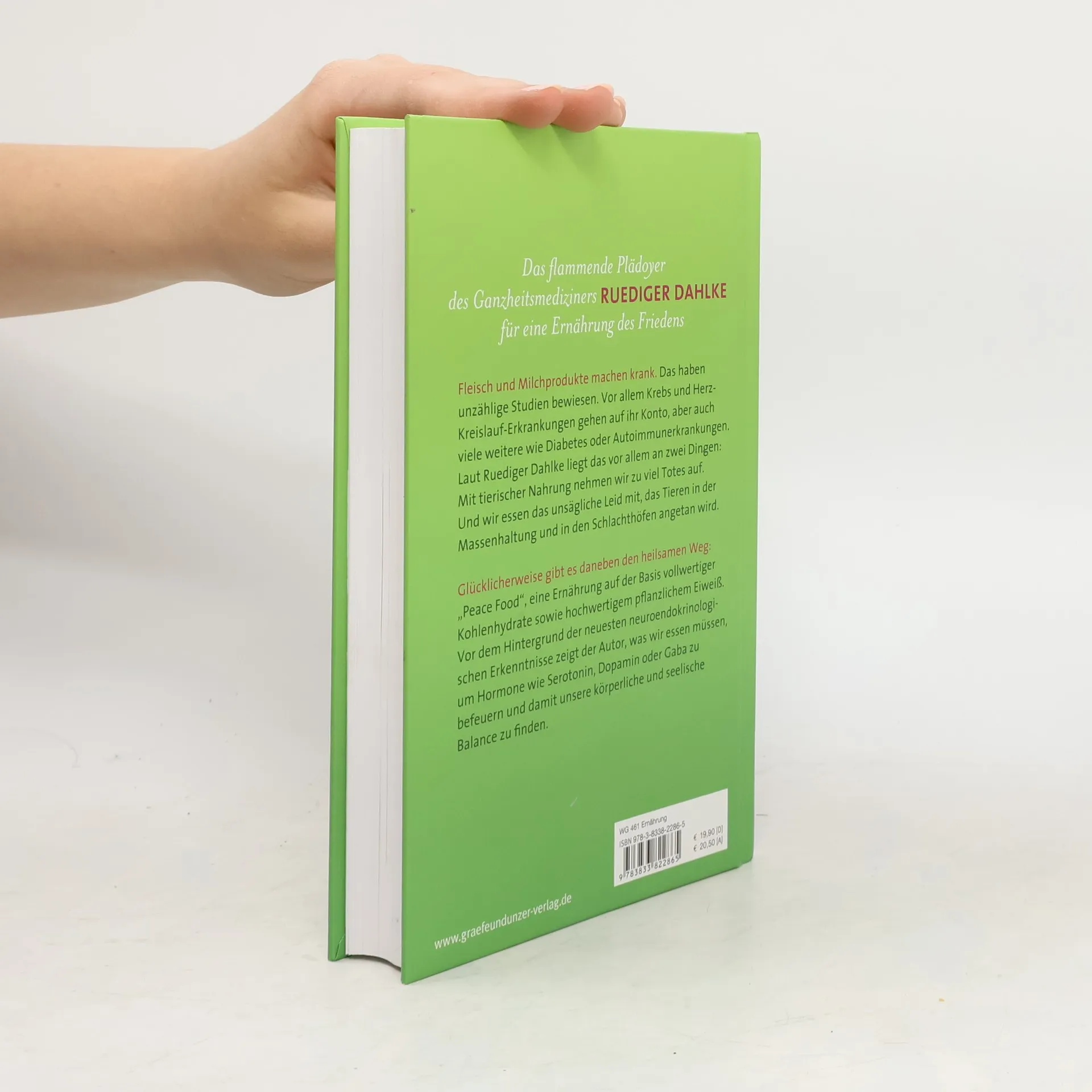 Ernährung kann heilen. Rüdiger Dahlke plädiert für eine „Friedensernährung“, denn unsere Nahrung enthält zu viel Totes und macht deshalb unglücklich. Eine umfangreiche Langzeitstudie hat bewiesen, dass es einen Zusammenhang zwischen Fleischkonsum und Krebsinzidenz gibt. Und Krebs ist aus Dahlkescher Sicht eindeutig eine Krankheit der Seele. Dem stellt er die heilende Ernährung entgegen. Mit 30 veganen Rezepten von Dorothea Neumayr. Alle Rezepte wurden überarbeitet (z. B. keine Verwendung von Distelöl mehr, Verzicht auf Zucker, Puderzucker, Honig zugunsten alternativer Süßungsmittel etc.).