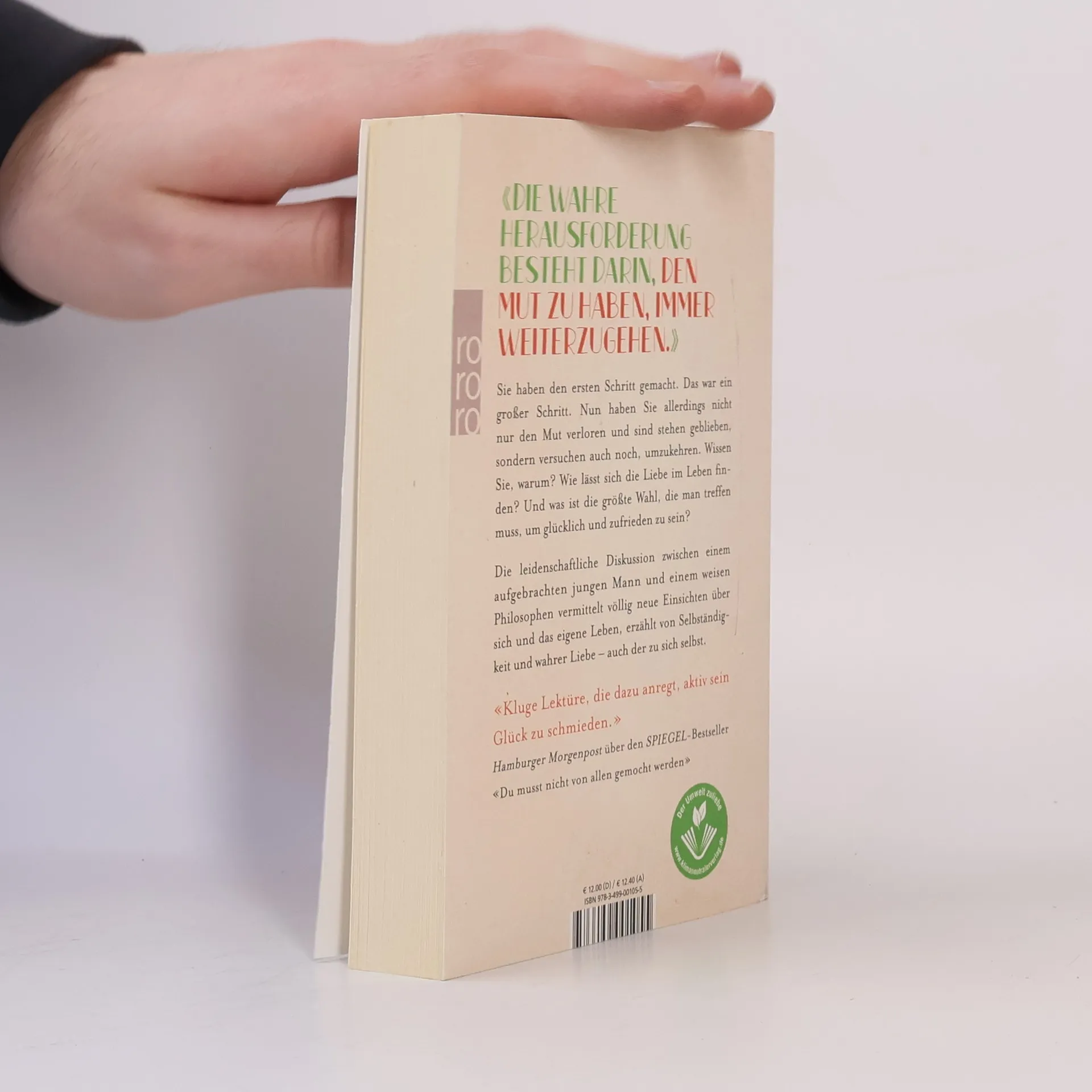 In der Fortsetzung des SPIEGEL-Bestsellers «Du musst nicht von allen gemocht werden» hadert der junge Mann mit der Umsetzung seiner neu gewonnen Erkenntnisse und einer großen Angst vorm Scheitern: Wie lässt sich das Glück im Leben finden? Wie lassen sich Adlers Prinzipien im normalen Alltag praktizieren? Und was ist «die größte Wahl» im Leben, die man treffen muss, um glücklich und zufrieden zu leben? Auch diesmal wird die leidenschaftliche Diskussion zwischen dem aufgebrachten jungen Mann und dem weisen Philosophen dem Leser völlig neuen Einsichten über sich selbst und das eigene Leben vermitteln.