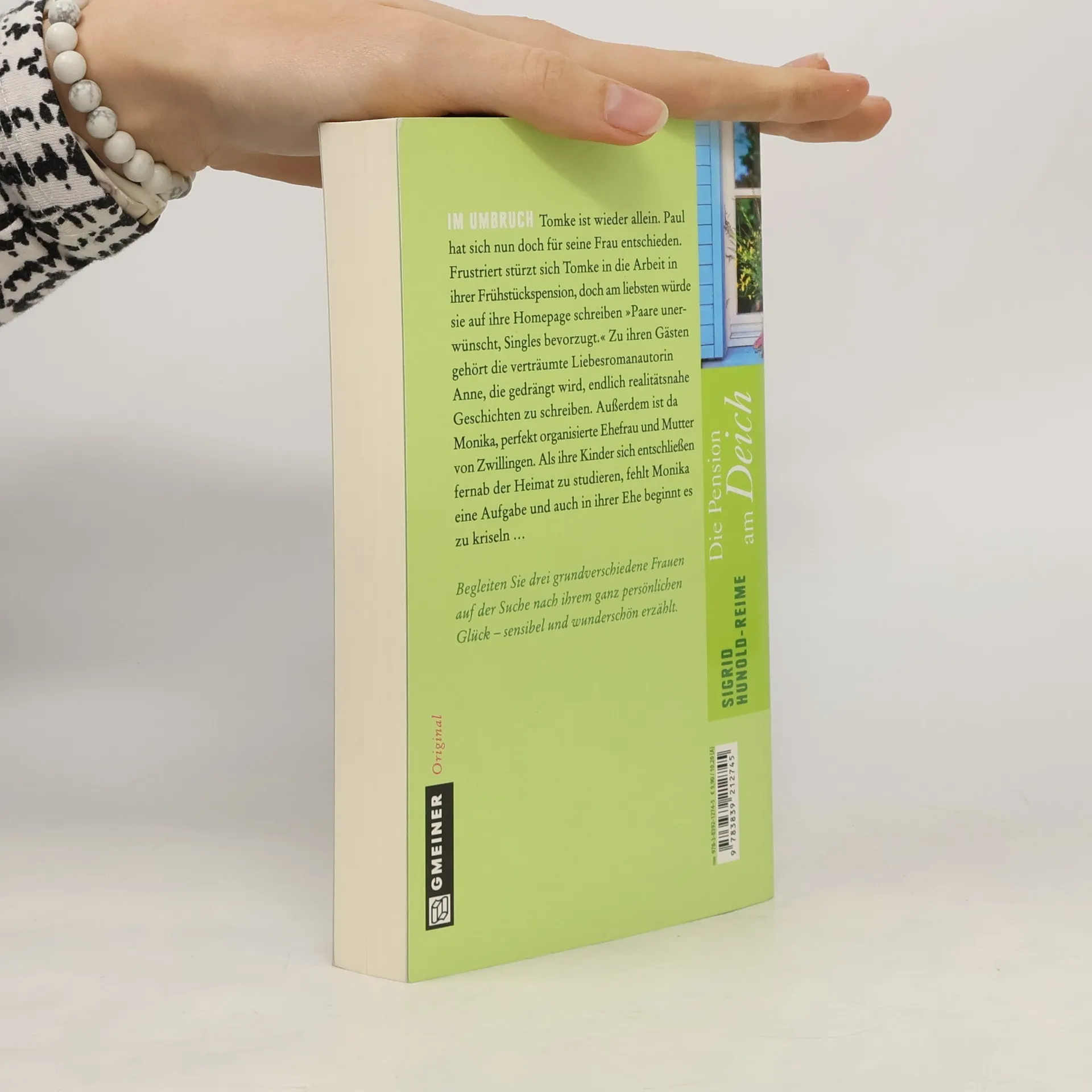 Tomke ist wieder allein. Paul hat sich nun doch für seine Frau entschieden. Frustriert stürzt sich Tomke in die Arbeit in ihrer Frühstückspension, doch am liebsten würde sie auf ihre Homepage schreiben "Paare unerwünscht, Singles bevorzugt." Zu ihren Gästen gehört die verträumte Liebesromanautorin Anne, die gedrängt wird, endlich realitätsnahe Geschichten zu schreiben. Ausserdem ist da Monika, perfekt organisierte Ehefrau und Mutter von Zwillingen. Als ihre Kinder sich entschliessen fernab der Heimat zu studieren, fehlt Monika eine Aufgabe und auch in ihrer Ehe beginnt es zu kriseln ... Sigrid Hunold-Reime ist 1954 in Hameln geboren und lebt seit vielen Jahren in Hannover. Seit 1995 verfasst sie Lyrik und Kurzprosa, seit 2000 - inspiriert durch eine Ausschreibung - auch Kurzkrimis und Kriminalromane. "Die Pension am Deich" ist ihr erster Frauenroman nach drei Kriminalromanen im Gmeiner-Verlag.