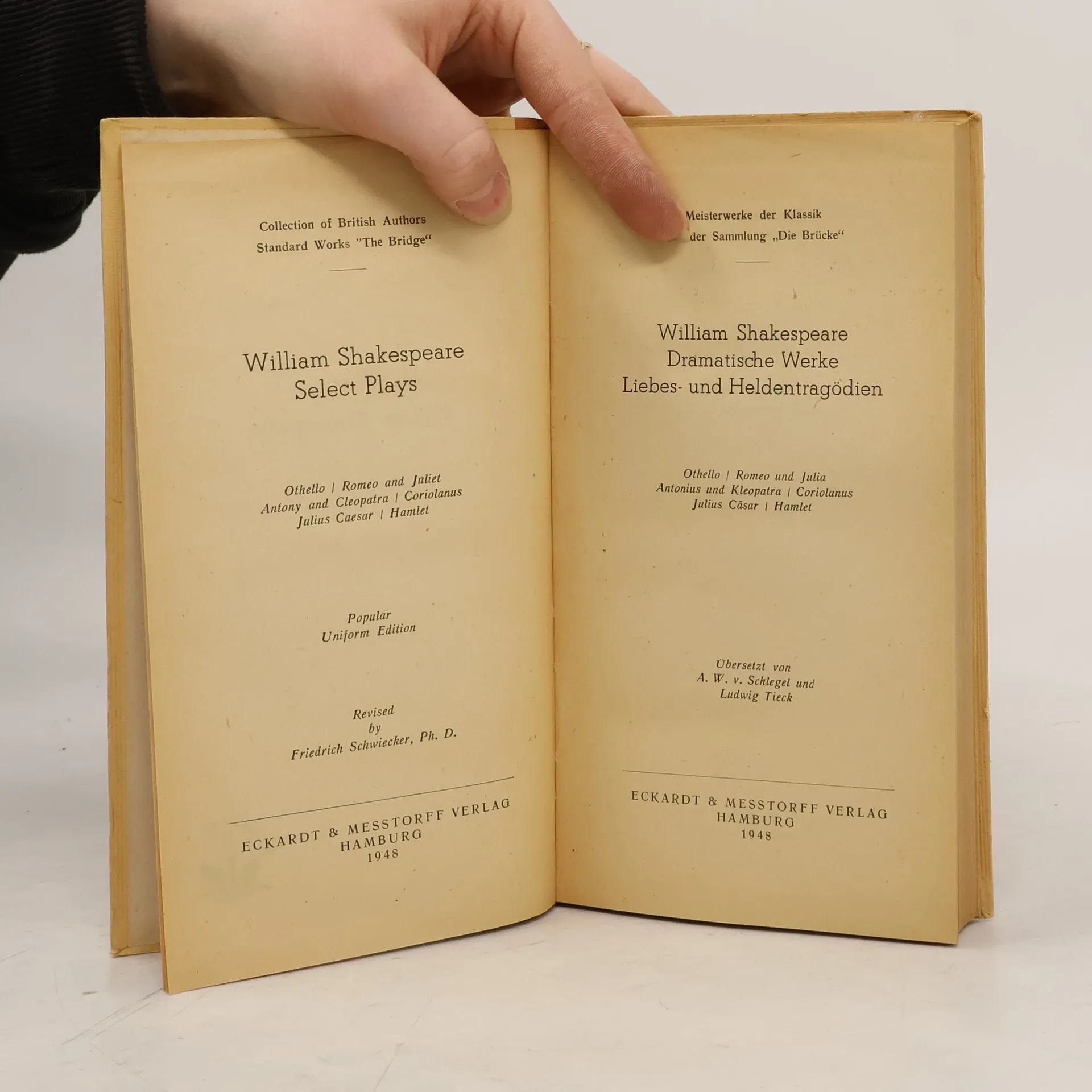 Die Bedeutung Shakespeares für die deutsche Dichtung ist kaum zu überschätzen. Seine Werke wurden nicht nur von Goethe begeistert begrüßt. Maßgeblichen Anteil daran hatte die Übersetzung von August Wilhelm Schlegel, die Dorothea Tieck und Wolf Graf Baudissin vollendet haben. Seit langem ist jedoch bekannt, dass die Schlegel-Tieck'sche Übertragung immer wieder durch philologische Eingriffe verändert wurde. Nun liegt endlich ein Neudruck des ursprünglichen Textes vor. Diese Leseausgabe enthält sämtliche Tragödien, darunter so bekannte Werke wie ›Romeo und Julia‹, ›Macbeth‹, ›Hamlet‹, ›König Lear‹ und ›Othello‹. Sie sollte in keinem Bücherschrank fehlen!