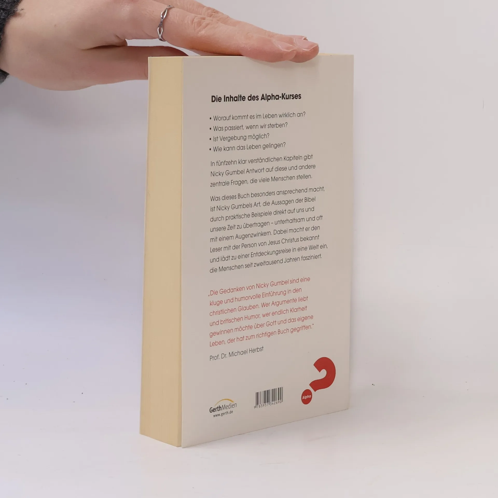 Worauf kommt es im Leben wirklich an? Was passiert, wenn wir sterben? Ist Vergebung möglich? Wie kann das Leben gelingen? In fünfzehn klar verständlichen Kapiteln gibt Nicky Gumbel Antwort auf diese und andere zentrale Fragen, die viele Menschen stellen. Was dieses Buch besonders ansprechend macht, ist Nicky Gumbels Art, die Aussagen der Bibel durch praktische Beispiele direkt auf uns und unsere Zeit zu übertragen - unterhaltsam und oft mit einem Augenzwinkern. Dabei macht er den Leser mit der Person von Jesus Christus bekannt und lädt zu einer Entdeckungsreise in eine Welt ein, die Menschen seit zweitausend Jahren fasziniert. Der Bestseller als erweiterte und aktualisierte Neuauflage. Die Gedanken von Nicky Gumbel sind eine kluge und humorvolle Einführung in den christlichen Glauben. Wer Argumente liebt und britischen Humor, wer endlich Klarheit gewinnen möchte über Gott und das eigene Leben, der hat zum richtigen Buch gegriffen. Prof. Dr. Michael Herbst, Greifswald