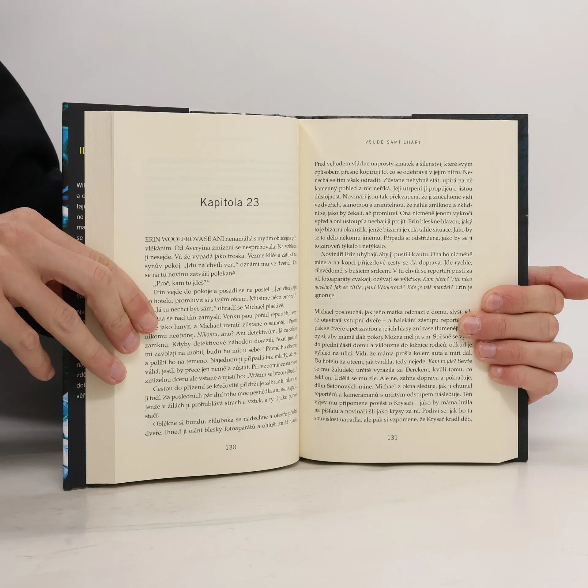 Psychologický thriller, ve kterém pátrání po devítileté dívce odkrývá skutečné vztahy a dobře ukrývaná tajemství na malém městě. Z městečka Stanhope doslova sálá klid a bezpečí. Než se ztratí Avery, dcera místního bezúhonného lékaře. Ten se stane podezřelým číslo jedna, ale ne jediným. Někdo Avery viděl nastupovat do auta jednoho mladíka. A své nejlepší kamarádce tvrdila, že má staršího přítele. Najednou tady každý na někoho něco ví. Ale dá se tu vůbec někomu věřit? Nakladatelská anotace. Kráceno.