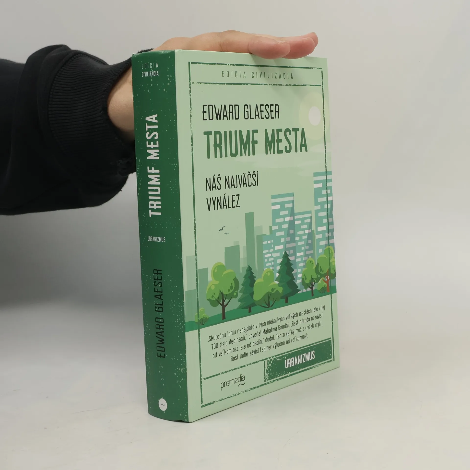 Jeden z najvýznamnejších ekonómov mesta prichádza s prelomovou knihou, ktorá mení naše nazeranie na mestá. Amerika by bez veľkých miest nebola Amerikou, ale napriek tomu majú veľkomestá zlú povesť: hovorí sa o nich, že sú špinavé, chudobné, nezdravé a škodia životnému prostrediu. Je to však pravda? Edward Glaeser vo svojej knihe tvrdí, že práve veľkomestá sú najzdravšie, najzelenšie a najbohatšie v ekonomickom aj kultúrnom zmysle. Vydáva sa do histórie a cestuje po celom svete, pričom opisuje, ako veľkomestá fungujú a ako ľudstvo vďaka nim napreduje. Glaeser je odvážny reportér a šikovný analytik, ktorý presvedčivo a naliehavo vysvetľuje, prečo sú mestá výnimočné a dôležité. Výsledkom jeho výskumu je množstvo dôkazov o tom, že práve veľkomestá sú tým najlepším vynálezom v histórii ľudstva a zároveň aj našou najväčšou nádejou do budúcnosti.