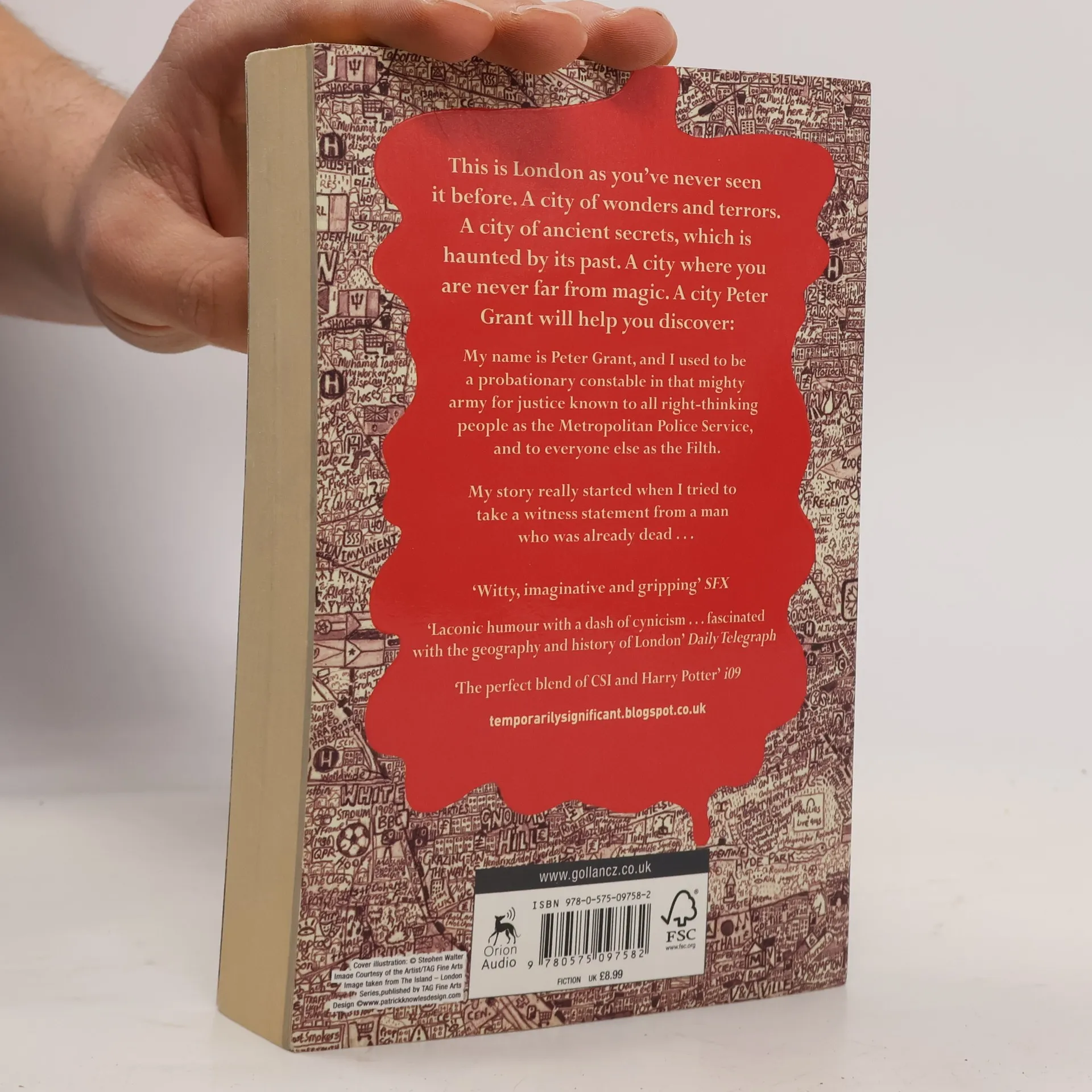 My name is Peter Grant and until January I was just probationary constable in that mighty army for justice known to all right-thinking people as the Metropolitan Police Service (and as the Filth to everybody else) ... One night, in pursuance of a murder inquiry, I tried to take a witness statement from someone who was dead but disturbingly voluable, bringing me to the attention of Inspector Nightingale, the last wizard in England. Now I'm a Detective Constable and a trainee wizard, the first apprentice in fifty years, and my world has become somewhat more complicated: nests of vampires in Purley, negotiating a truce between the warring god and goddess of the Thames, and digging up graves in Covent Garden ...and there's something festering at the heart of the city I love, a malicious vengeful spirit that takes ordinary Londoners and twists them into grotesque mannequins to act out its drama of violence and despair. The spirit of riot and rebellion has awakened in the city, and it's falling to me to bring order out of chaos - or die trying.