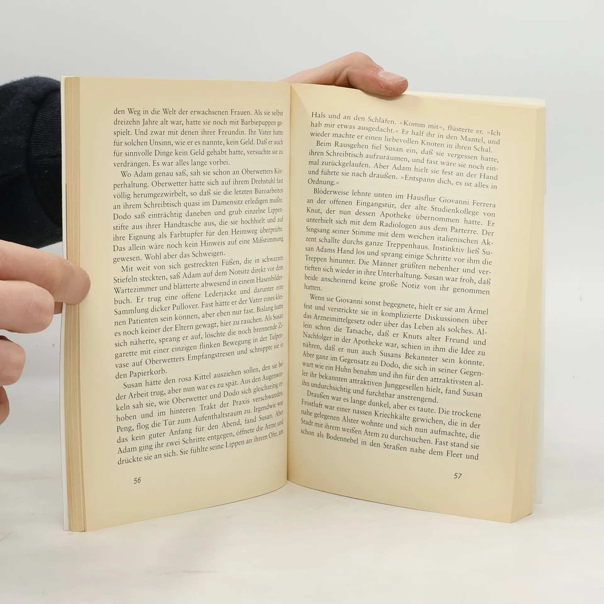 Susan, Kinderärztin im etwas struppigen Teil der Stadt, hat eigentlich schon einen, nur ist der gerade für ein paar Jahre ins Ausland, was sie nicht so recht begreift. Da stürzt sie mit dem Fahrrad und fällt einem jungen Mann direkt vor die Füße: Adam, der auf der Straße lebt, hilft ihr artig auf - da passiert es! Doch schon das erste Rendezvous geht voll daneben. Und es mangelt nicht an weiteren Turbulenzen in Hilke Rosenbooms Roman über ein ungleiches Paar, dessen ungewöhnliche Liebesgeschichte bezaubert und anrührt.