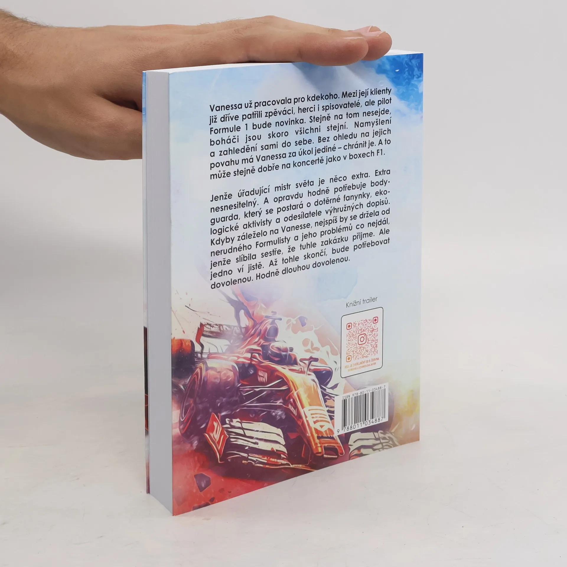 Vanessa už pracovala pro kdekoho. Mezi její klienty již dříve patřili zpěváci, herci i spisovatelé, ale pilot Formule 1 bude novinka. Stejně na tom nesejde, boháči jsou skoro všichni stejní. Namyšlení a zahledění sami do sebe. Bez ohledu na jejich povahu má Vanessa za úkol jediné – chránitje. A to může stejně dobře na koncertě jako v boxech F1. Jenže úřadující mistr světa je něco extra. Extra nesnesitelný. A opravdu hodně potřebuje bodyguarda, který se postará o dotěrné fanynky, ekologické aktivisty a odesílatele výhružných dopisů. Kdyby záleželo na Vanesse, nejspíš by se držela od nerudného Formulisty a jeho problémů co nejdál, jenže slíbila sestře, že tuhle zakázku přijme. Ale jedno ví jistě. Až tohle skončí, bude potřebovat dovolenou. Hodně dlouhou dovolenou.