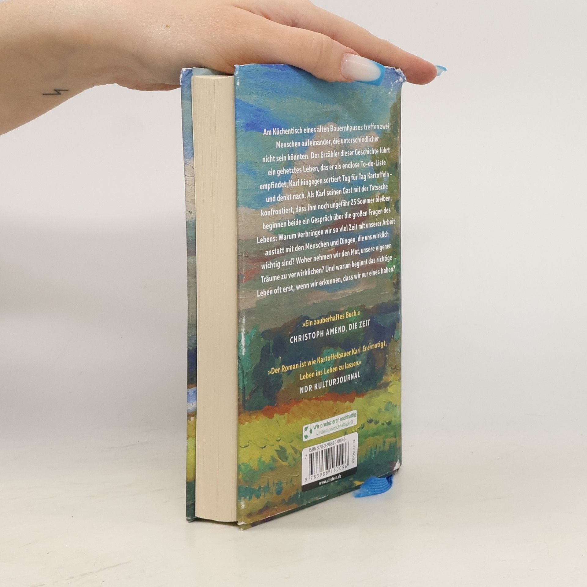 Am Küchentisch eines alten Bauernhauses treffen zwei sehr unterschiedliche Menschen aufeinander. Der Erzähler führt ein gehetztes Leben, das er als endlose To-do-Liste empfindet, während Karl, der Tag für Tag Kartoffeln sortiert, in Ruhe nachdenkt. Als Karl seinem Gast mitteilt, dass ihm noch etwa 25 Sommer bleiben, entfaltet sich ein tiefgründiges Gespräch über die großen Fragen des Lebens: Warum investieren wir so viel Zeit in die Arbeit anstatt in die Menschen und Dinge, die uns wirklich wichtig sind? Woher nehmen wir den Mut, unsere Träume zu verwirklichen? Und warum beginnt das richtige Leben oft erst, wenn wir erkennen, dass wir nur eines haben? Der Autor regt dazu an, Antworten in uns selbst zu suchen. Diese Erzählung ist warm und tiefgründig, sie spricht unsere Sehnsucht nach einem ausgewogenen Leben an und nimmt uns mit zu Karl und seinem Hof, zum See und auf den Kartoffelacker. Es ist eine Geschichte über Freundschaft, über das Zuviel und Zuwenig im Leben und über die Fragen, auf die wir alle Antworten finden möchten. Der Roman ermutigt, das Leben zu leben und vermittelt ein Gefühl der Dankbarkeit für kostbare Momente.